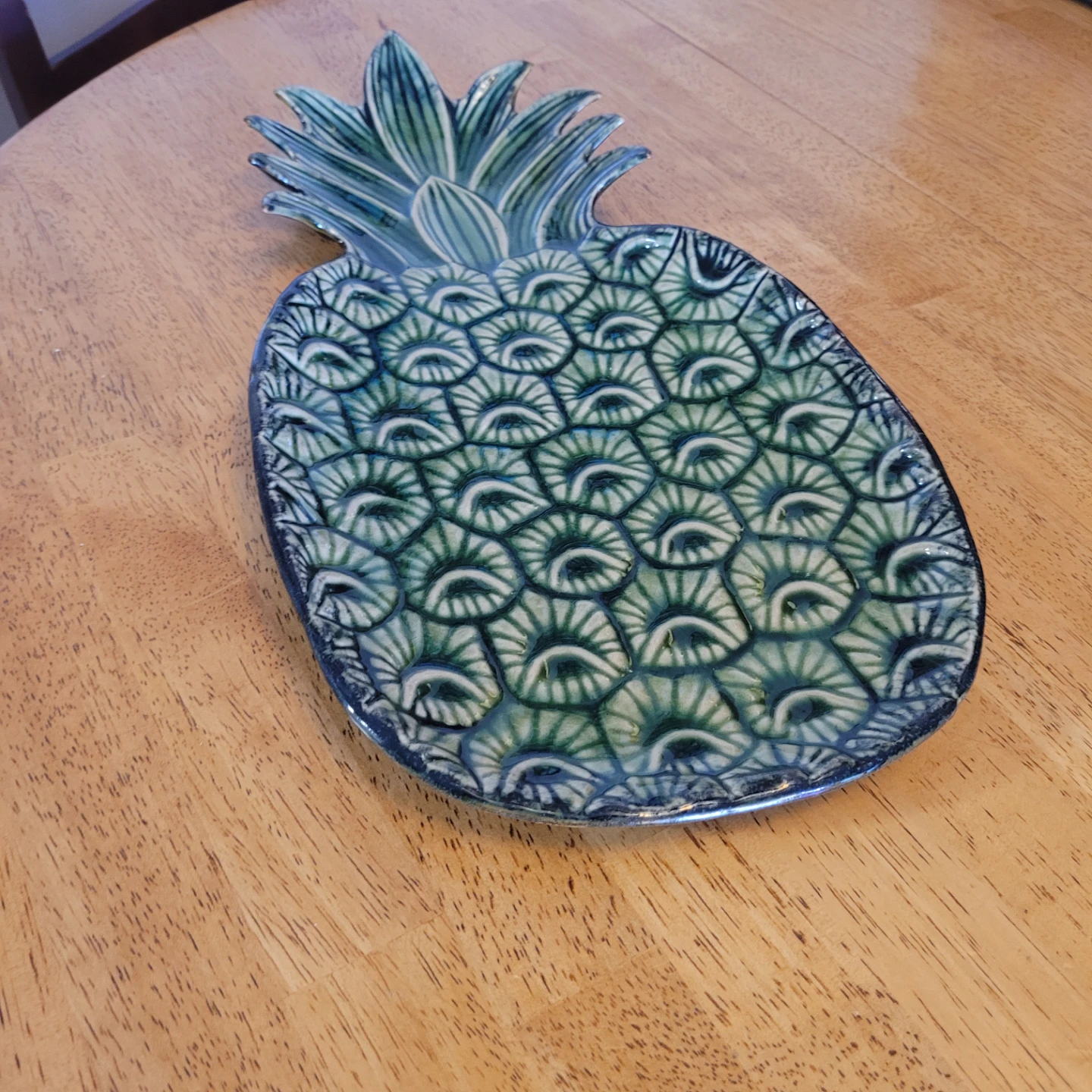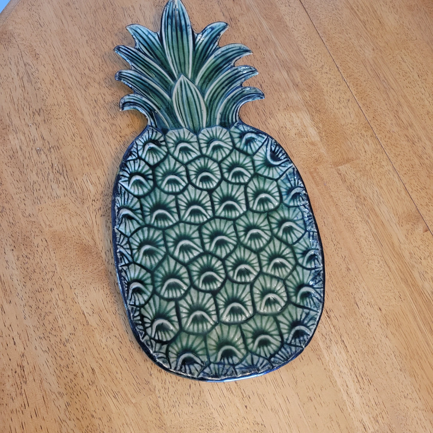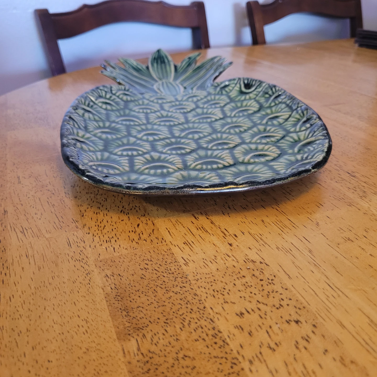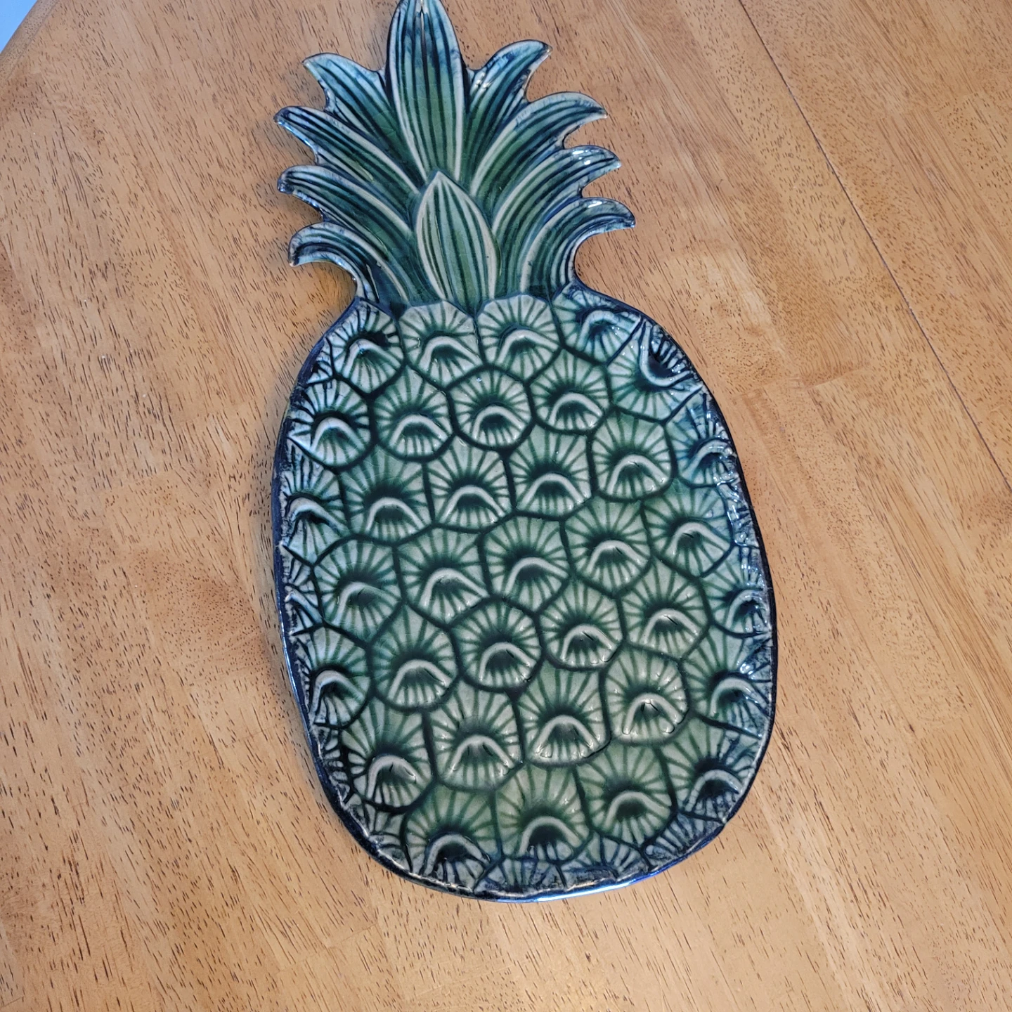 Beautiful Vintage 17" x 8 1/2" Pottery Ceramic Pineapple Serving Dish or Hanging Wall Decor Excellent Condition please see all pictures