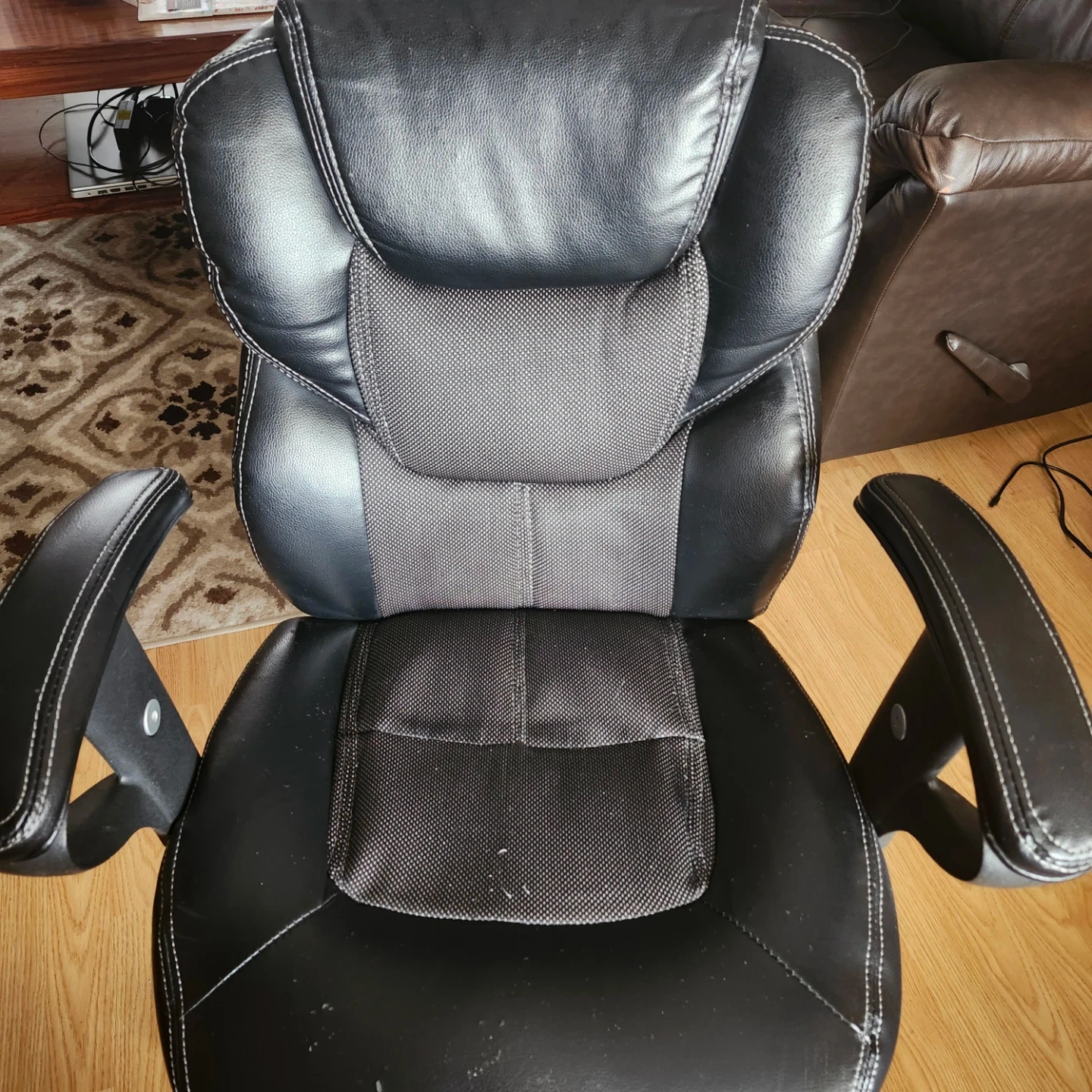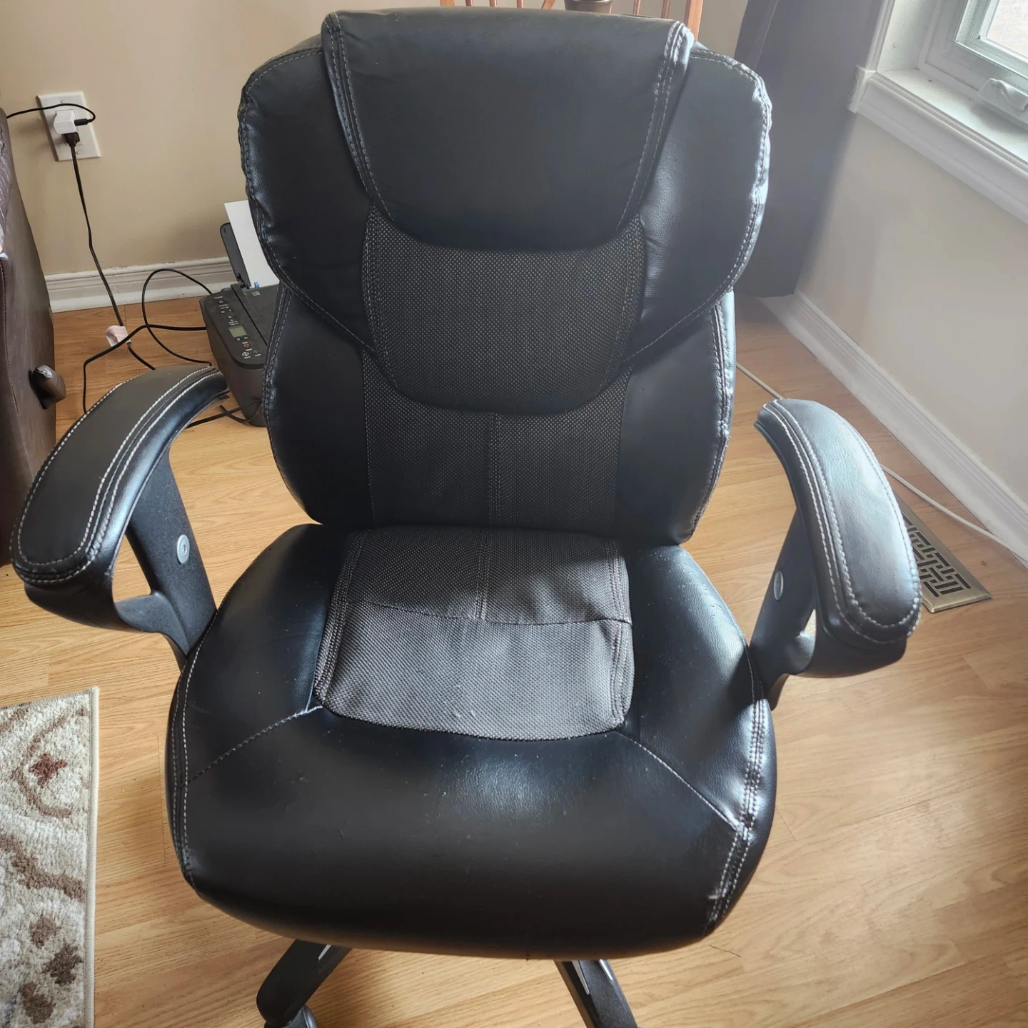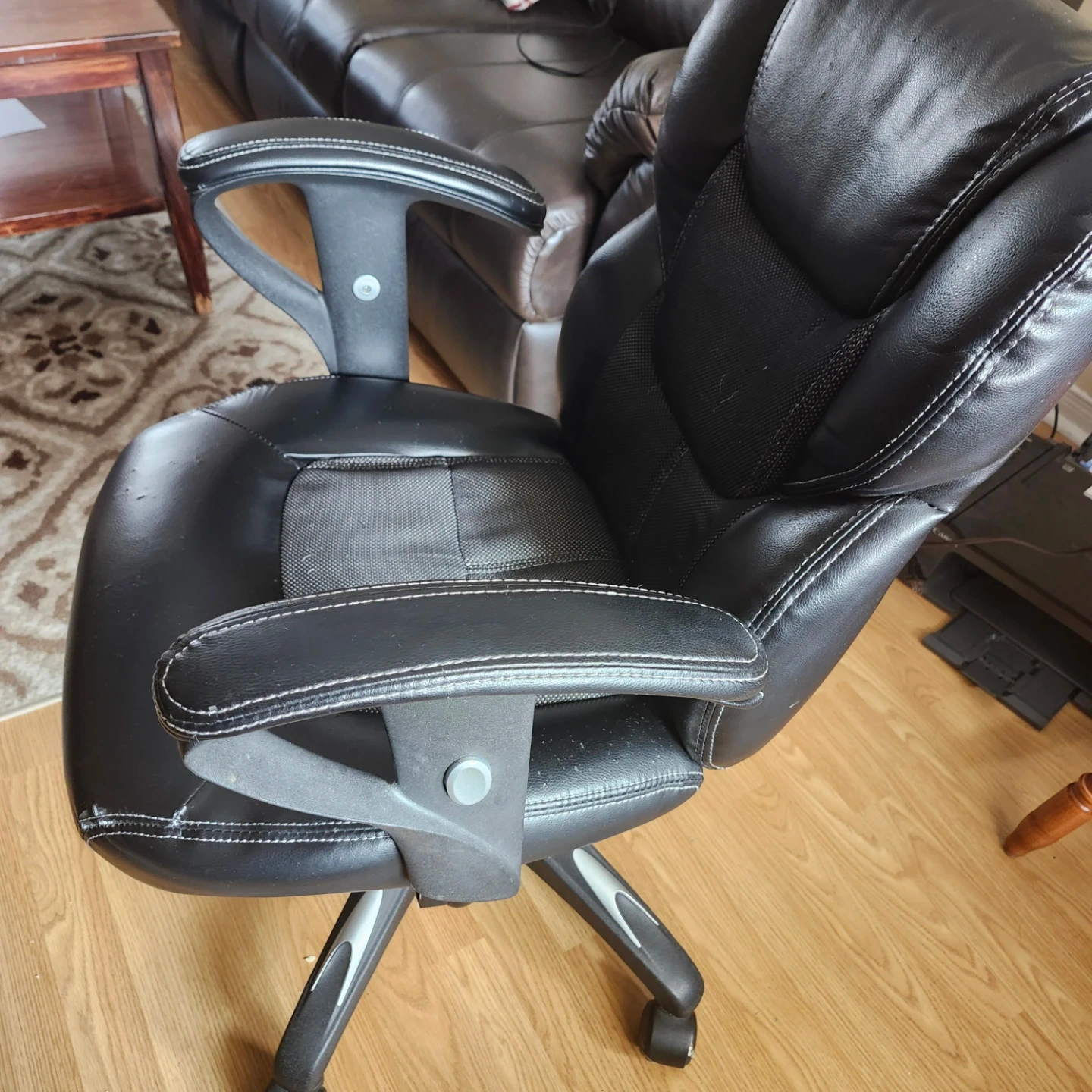 Selling a black office chair. It shows signs of wear, but is still in good working condition. Perfect for your home office!