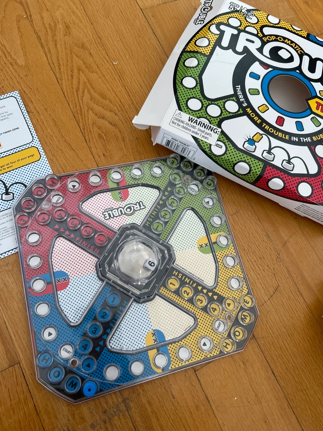 Selling a Trouble board game by Hasbro! It's in great shape and ready for some family fun. The box is included. It's the classic Pop-O-Matic version where there's more trouble in the bubble!