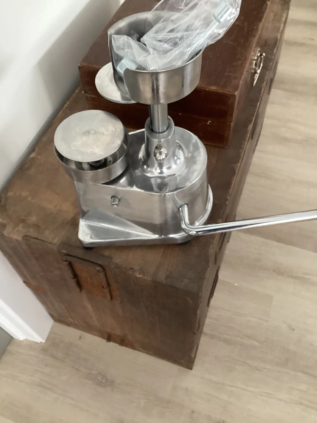 Selling a manual meat press, made of stainless steel. It's in great shape and ready to help you make some delicious homemade burgers or sausages!