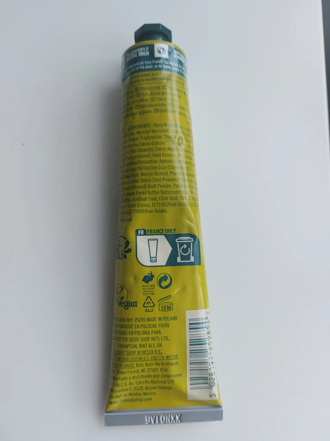 Selling a tube of The Body Shop Hemp Rescuing Hand Scrub! This is a hand scrub for ultra-dry hands that helps with hydrating and softening exfoliation. It comes in a 75ml (2.5 US FL oz) tube. Perfect for keeping your hands smooth and moisturized!