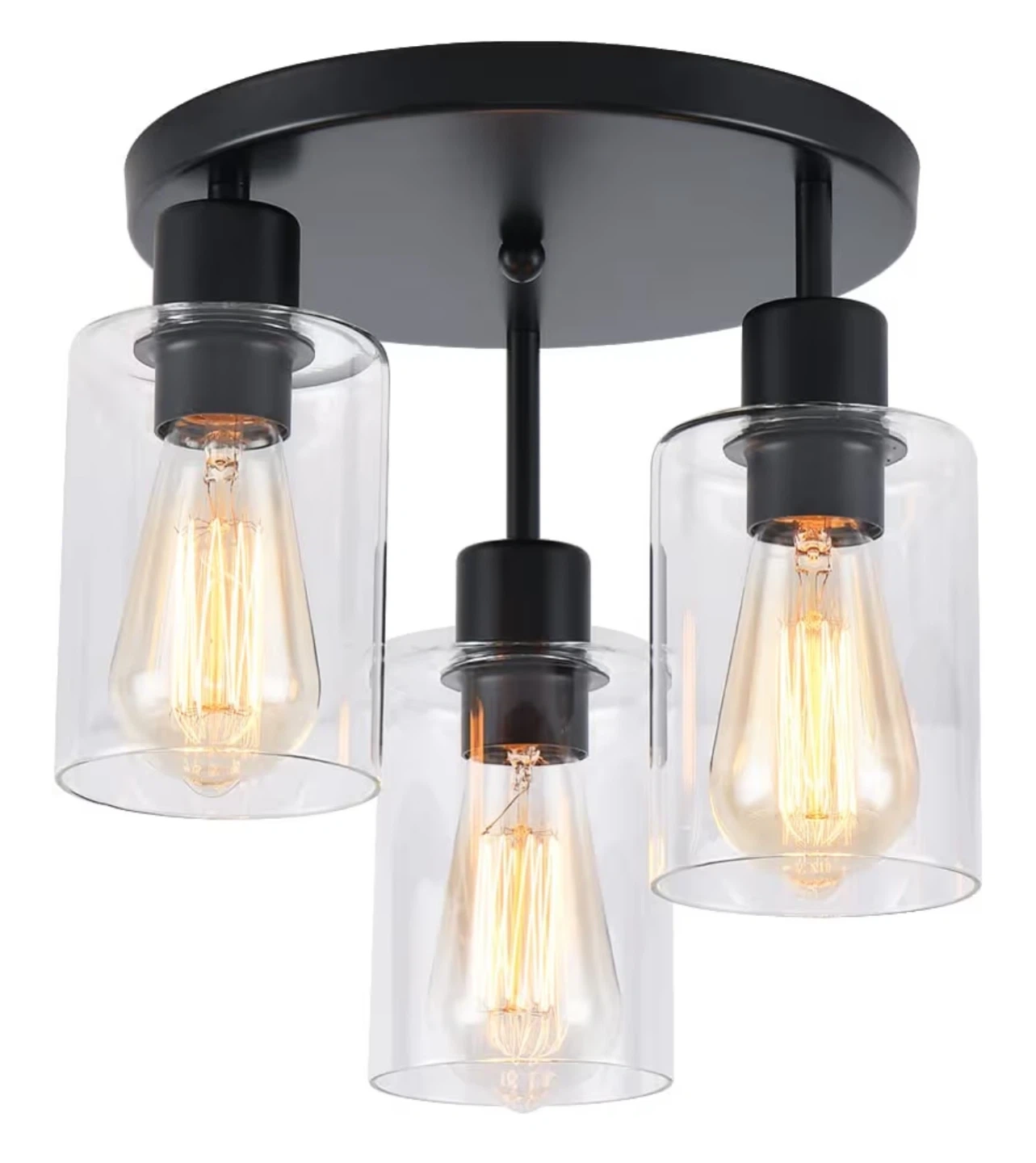 Ihengyanlt 3-Light Industrial Farmhouse Black Matte Light Fixture - Ceiling Mount, with Clear Glass Shades