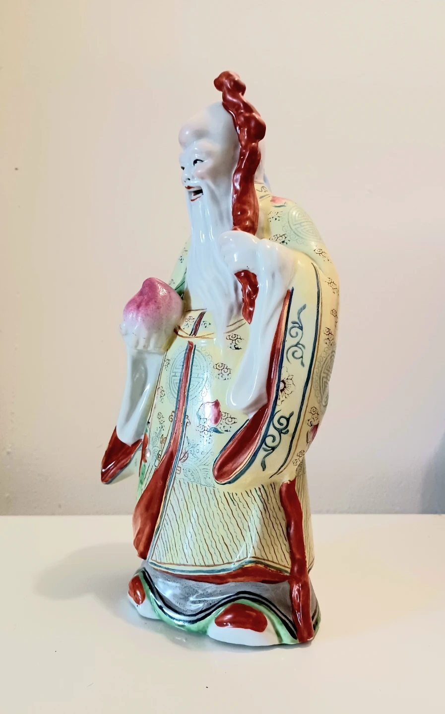 Famillie Rose Chinese, Hand Painted Porcelain Statue, depicting one of the Fu Lu Shou (also known as Sanxing ).