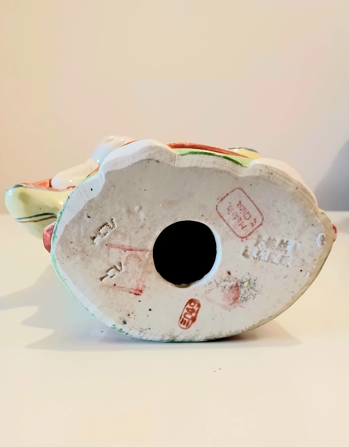 The figurine is intricately detailed with vibrant colours and traditional motifs. It stands approximately 12 inches tall and is in good condition, showcasing the craftsmanship of its time. A charming piece to add to any collection or as a unique decorative item.