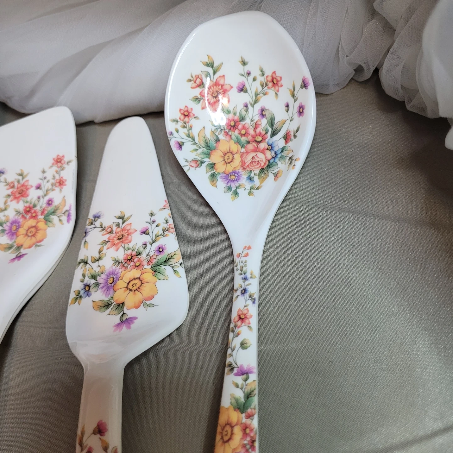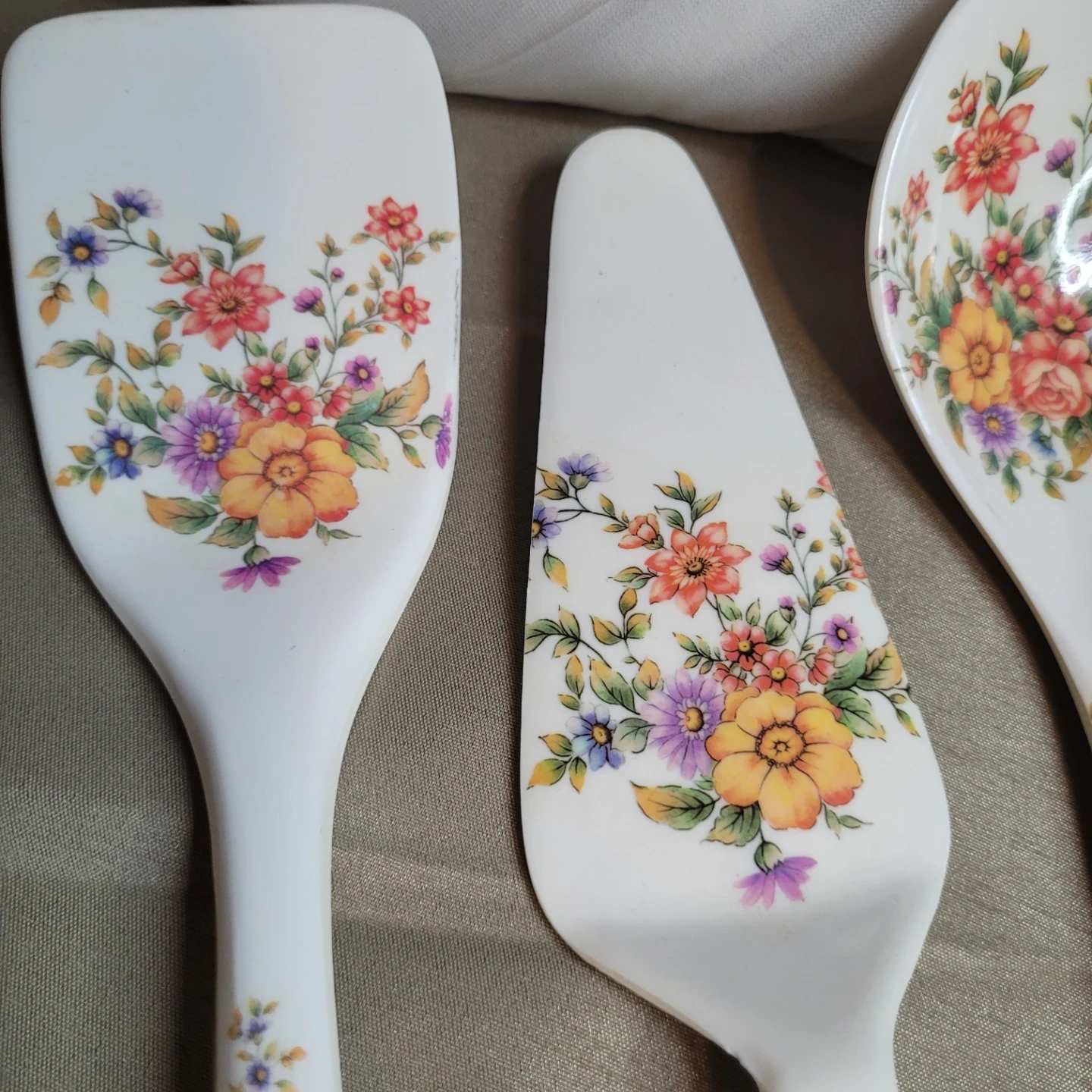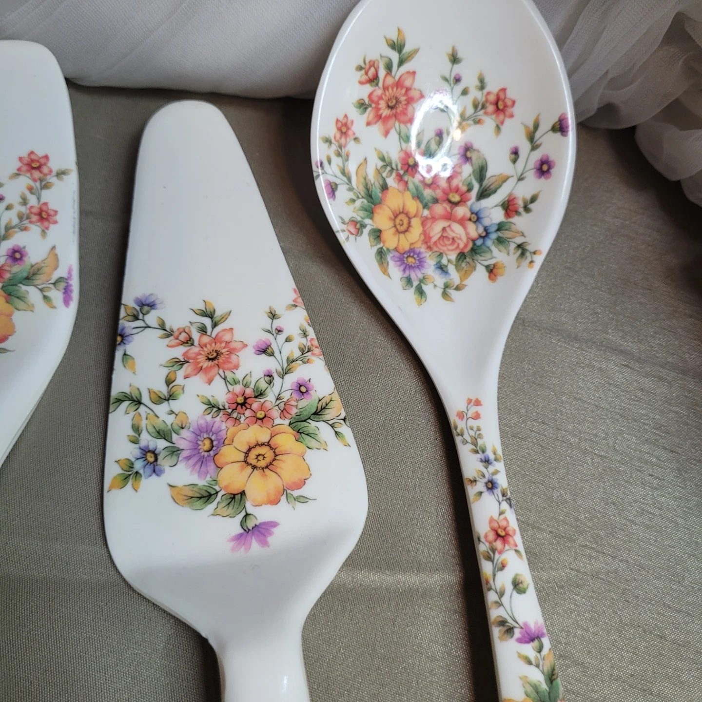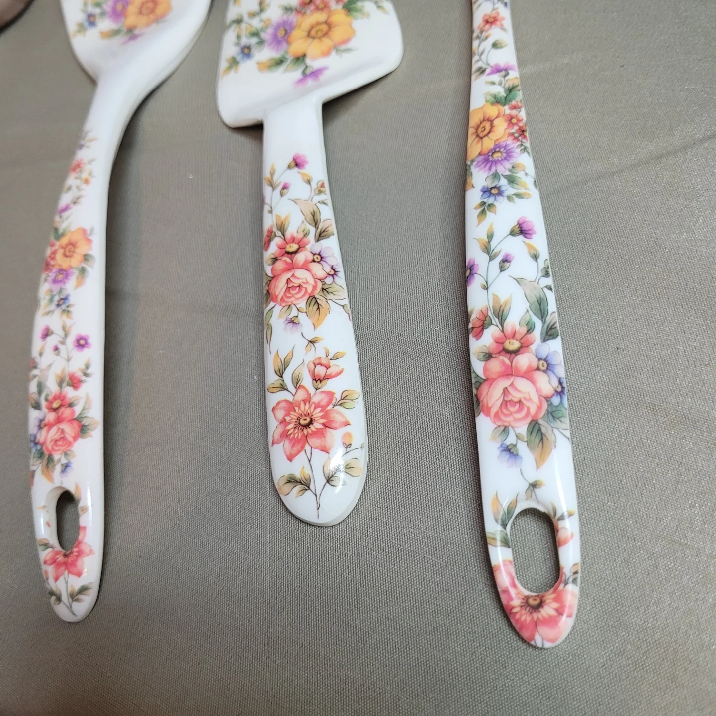 Beautiful Vintage 3 pc Floral Malemine Kitchen Utensil Set Excellent Condition please see all pictures
