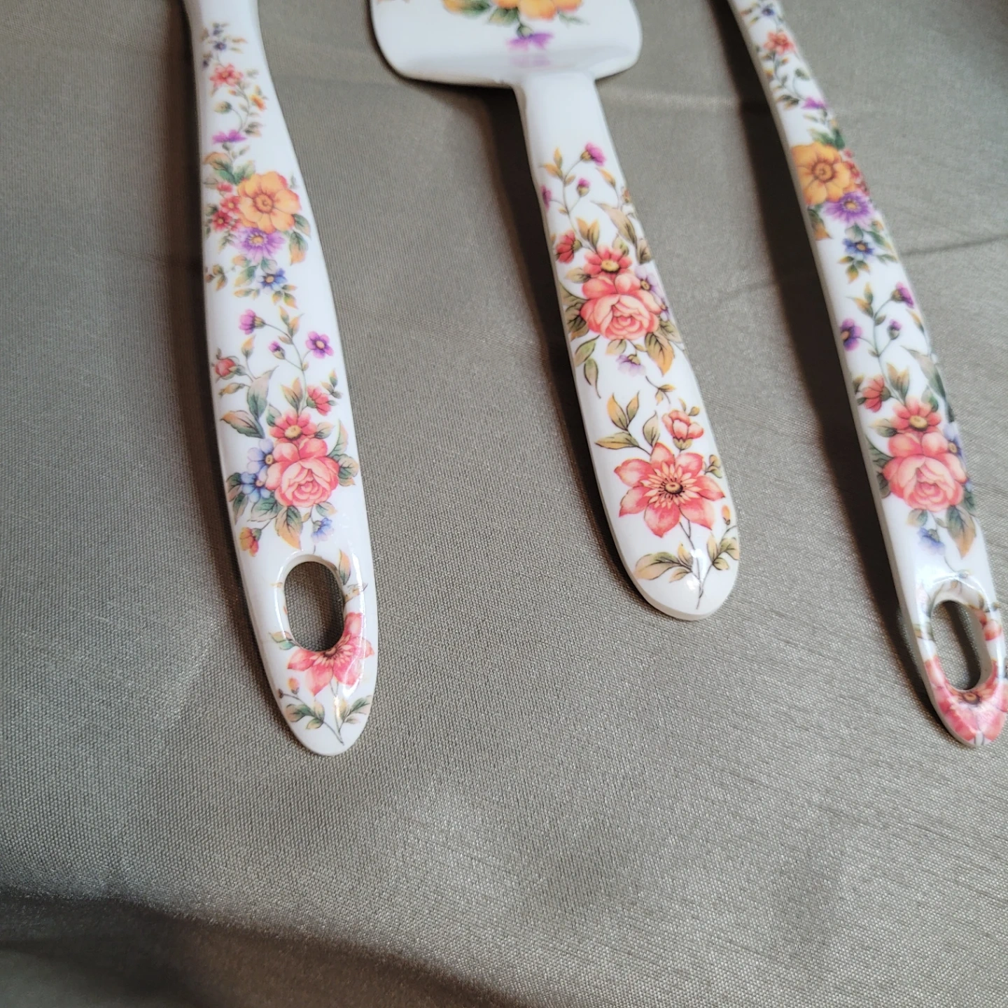 Beautiful Vintage 3 pc Floral Malemine Kitchen Utensil Set