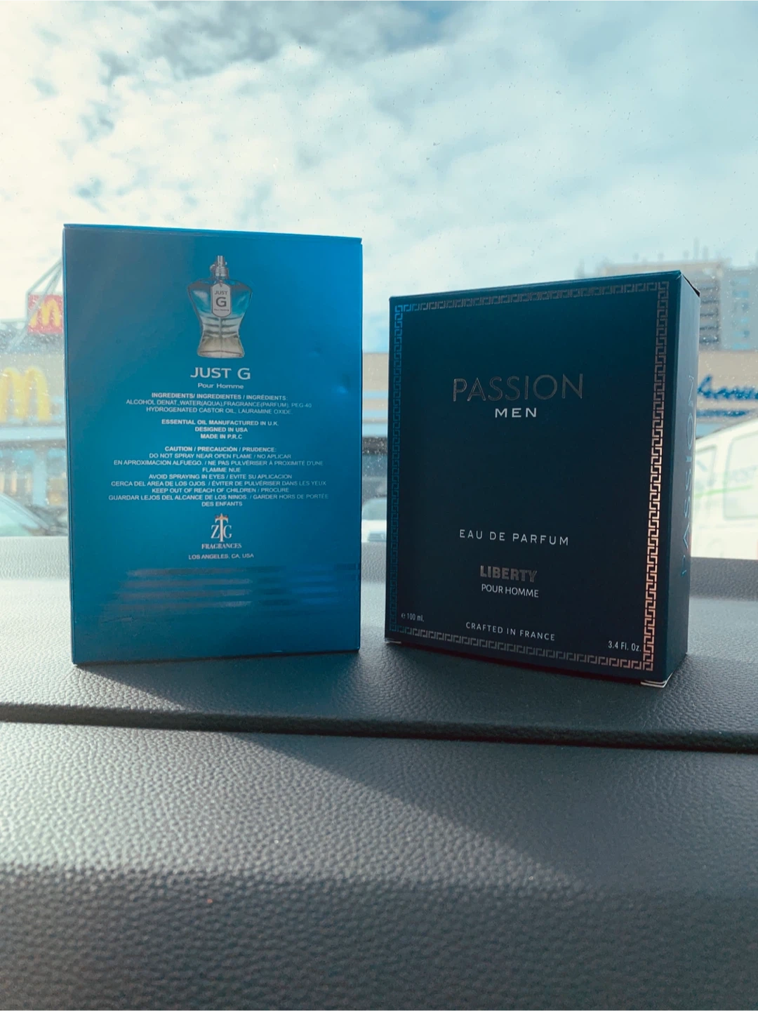 One is Just G Pour Homme and the other is Passion Men Eau de Parfum. Both are in great condition and ready for a new owner
