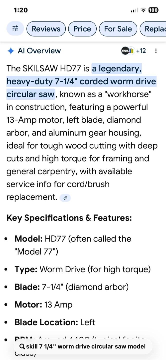 Selling a legendary Skillsaw HD77 Worm Drive Circular Saw, 7 1/4 inch size. It's a heavy-duty tool ready for powerful and accurate cuts. Brand New In box. MADE IN USA.