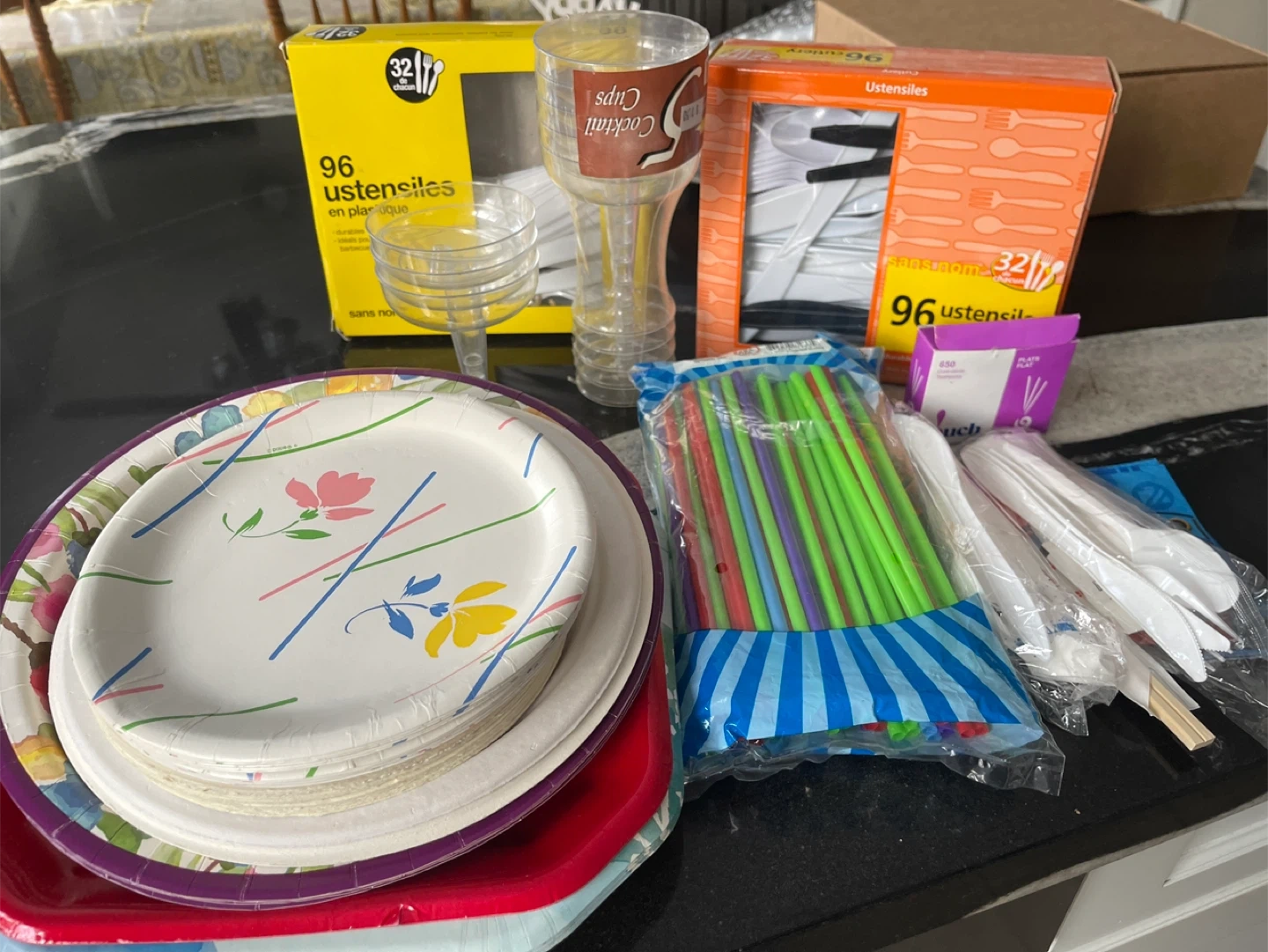 Getting ready for a party? I have a variety of disposable party supplies including plates, utensils, cocktail cups, and straws! There are plastic utensils in each of the yellow and orange boxes. Great for any gathering!