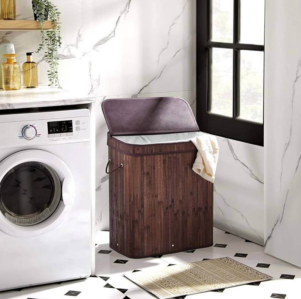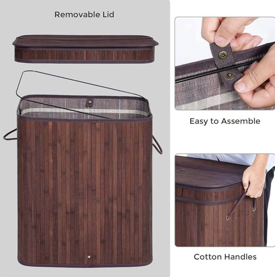 SONGMICS Bamboo Laundry Hamper with Lid – 100L, Brand New