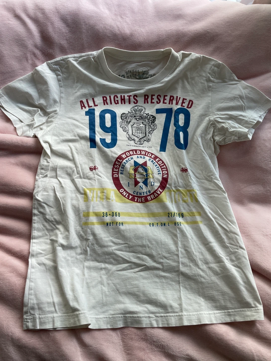 Diesel white graphic tee in size M. The tee features a cool "All Rights Reserved 1978" design. It's made of 100% cotton and in good condition!