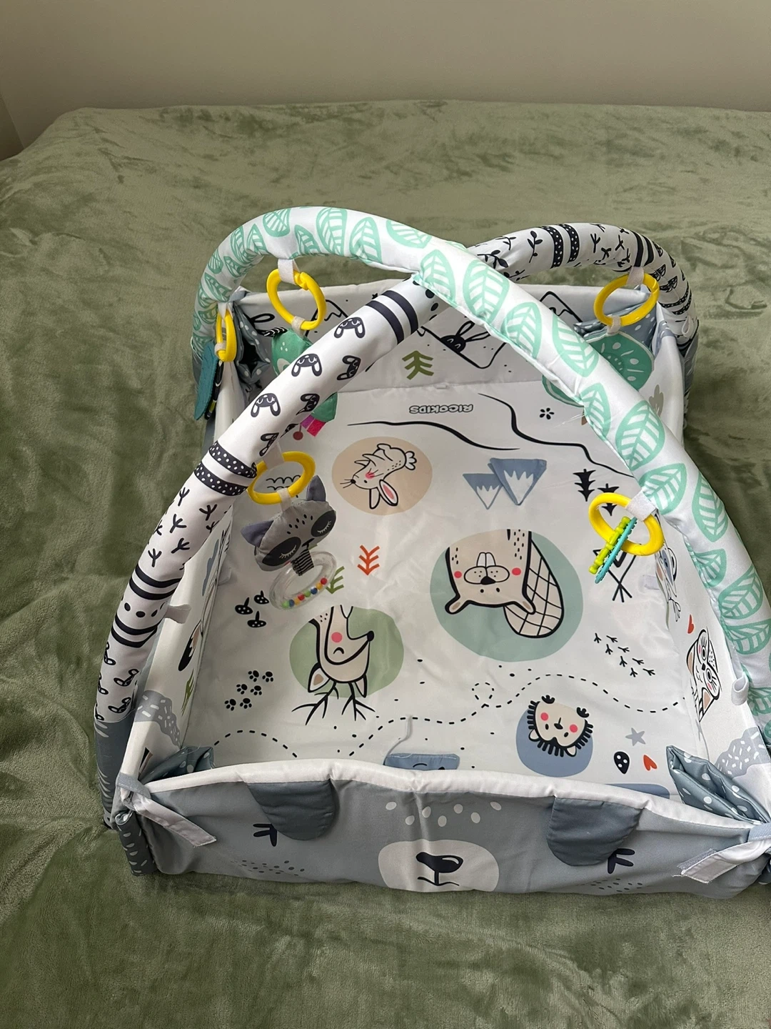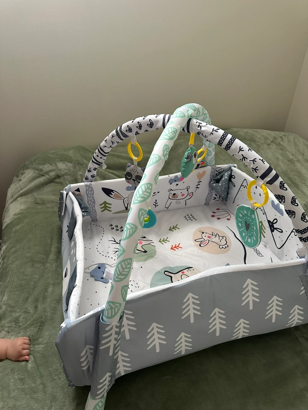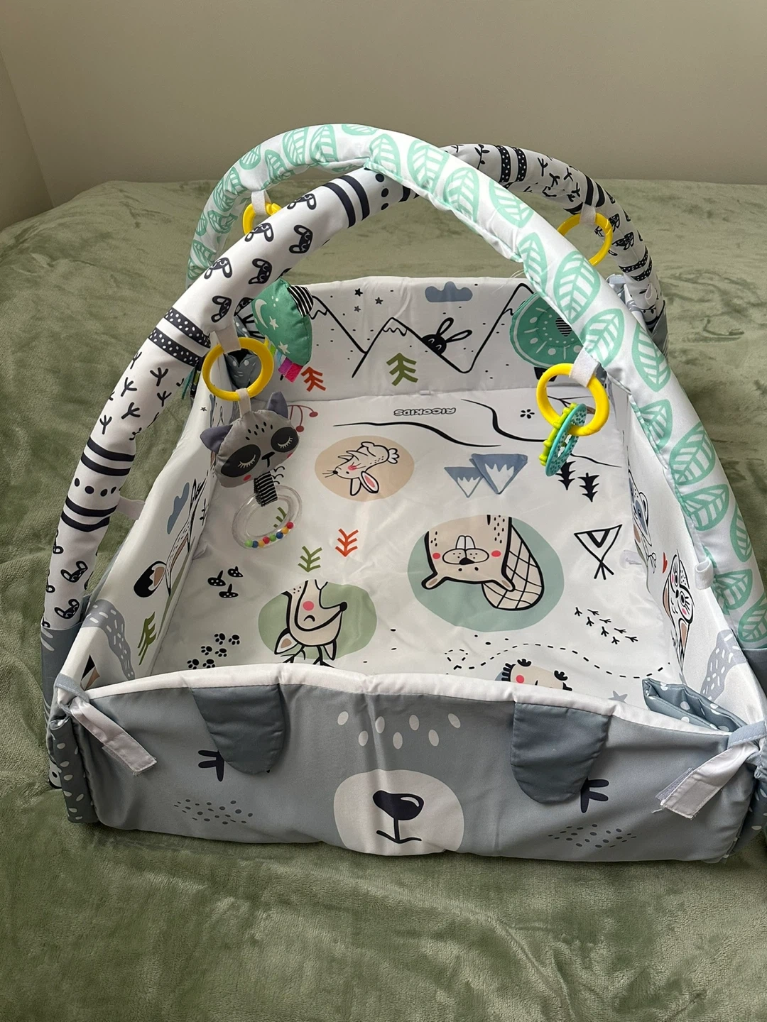 Selling a baby activity gym play mat in great condition! It features a cute woodland-themed design with various hanging toys to keep your little one entertained. Perfect for tummy time and early development