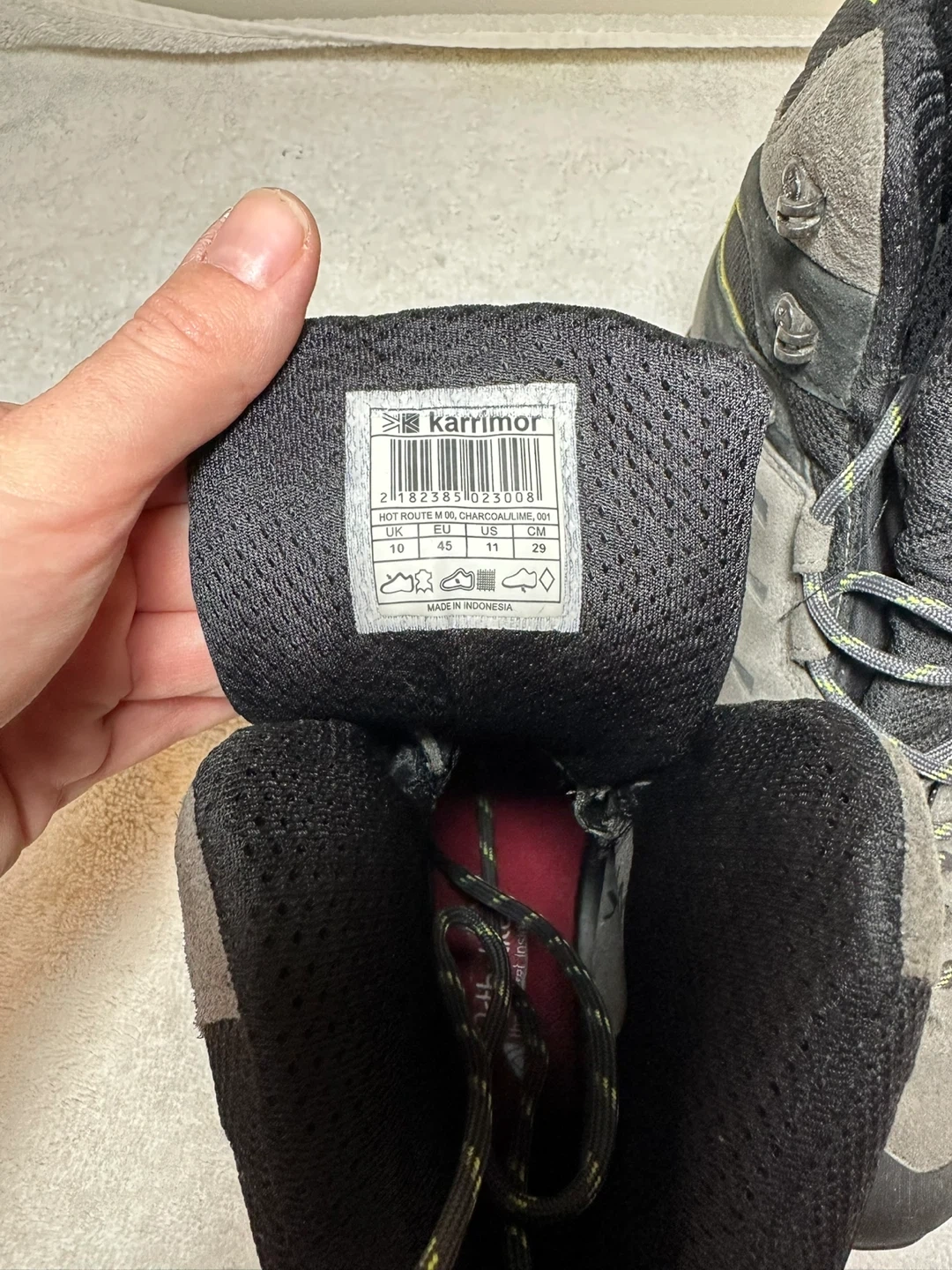 Selling a pair of Karrimor Hot Route hiking boots in great shape! They are a men's size US 10 and come in a charcoal/lime colour. Perfect for hitting the trails!