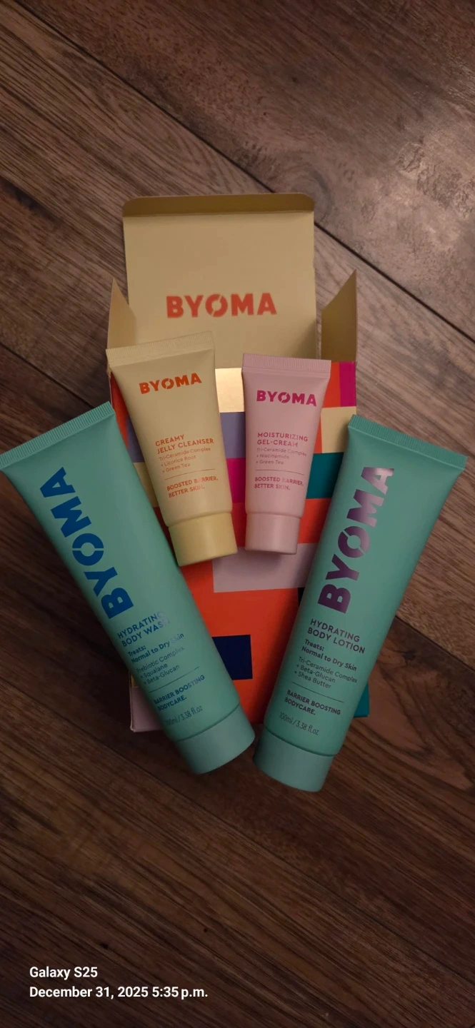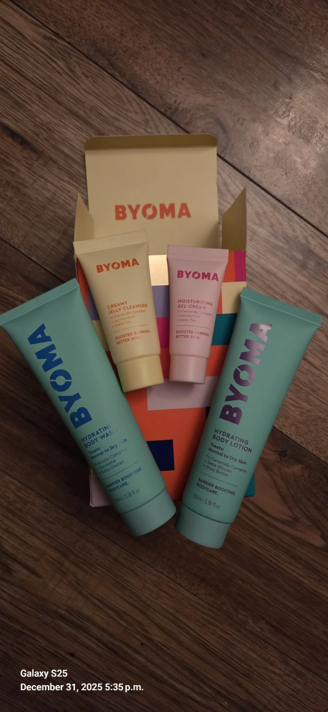 Selling a BYOMA skincare set! It includes hydrating body wash, creamy jelly cleanser, moisturizing rich cream, and hydrating body lotion. It also comes with the original box. The products are unopened.