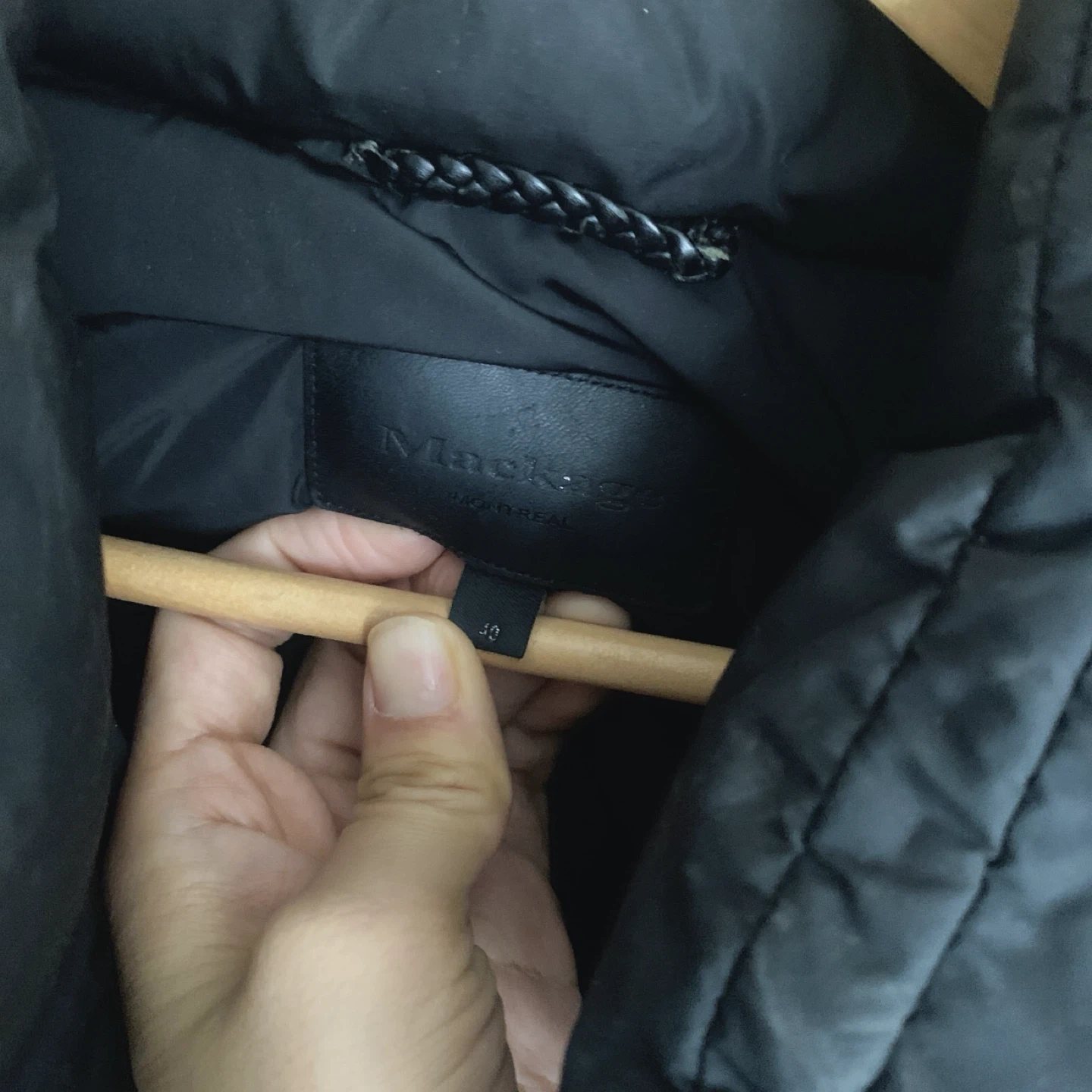 Selling a Mackage men’s winter down jacket in black.