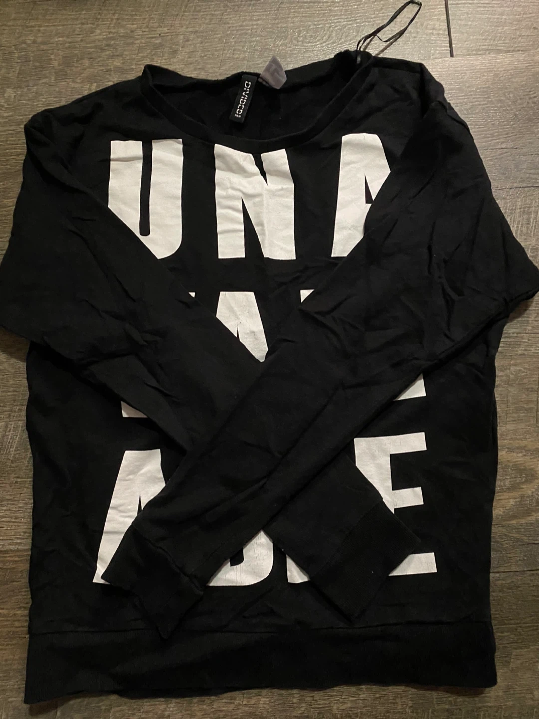 Selling a black graphic tee from H&M's Divided line! It's a size XS and features a bold graphic print. Perfect for casual wear!