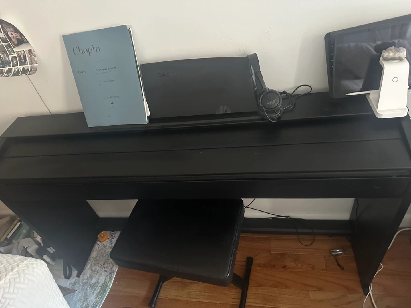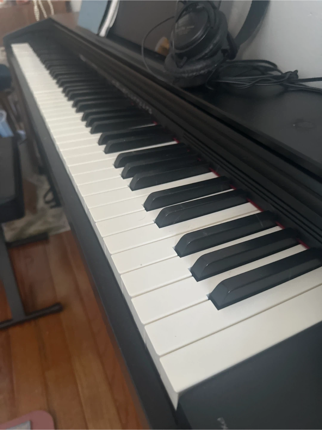 Selling a Casio Privia PX-770 digital piano in black. It's in good condition and ready for a new home. Weighted key, adjustable height piano bench included. I can give you a headset for free. Great digital piano for NYC forks because you can put a headset in and no one else can hear your piano. I enjoyed modestly but now I am moving out to new country.