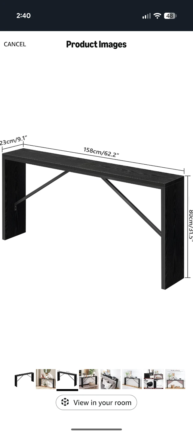 Selling a black console table! It's brand new in the box and would look great in any entryway or living room. Dimensions are 62.2" (158cm) long, 9.1" (23cm) wide, and 31.5" (80cm) high