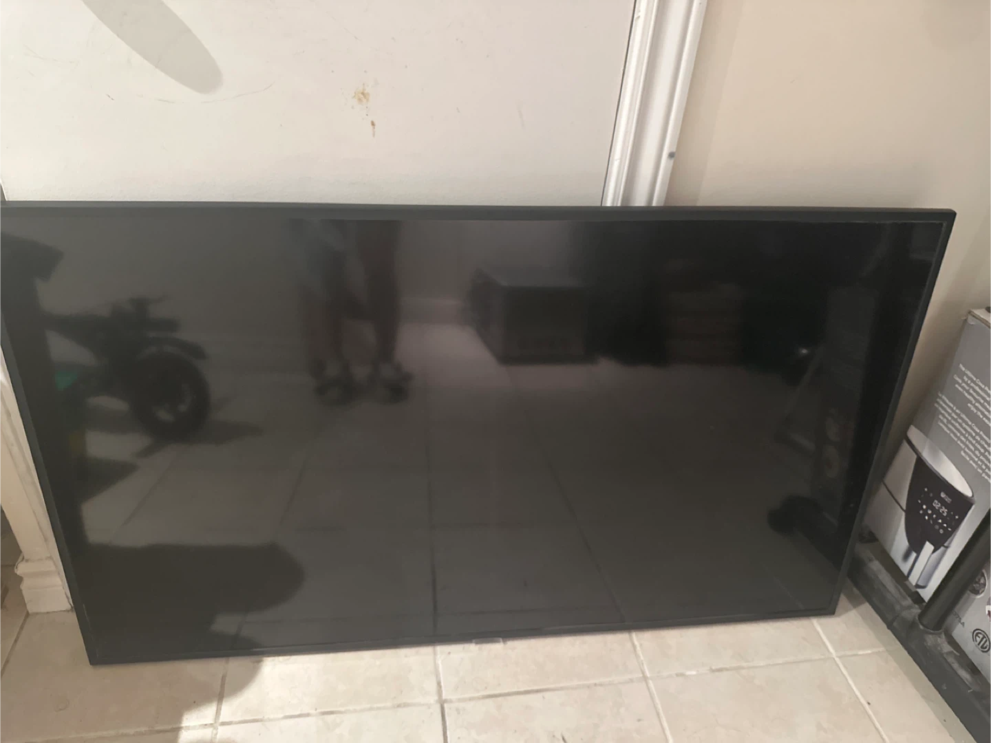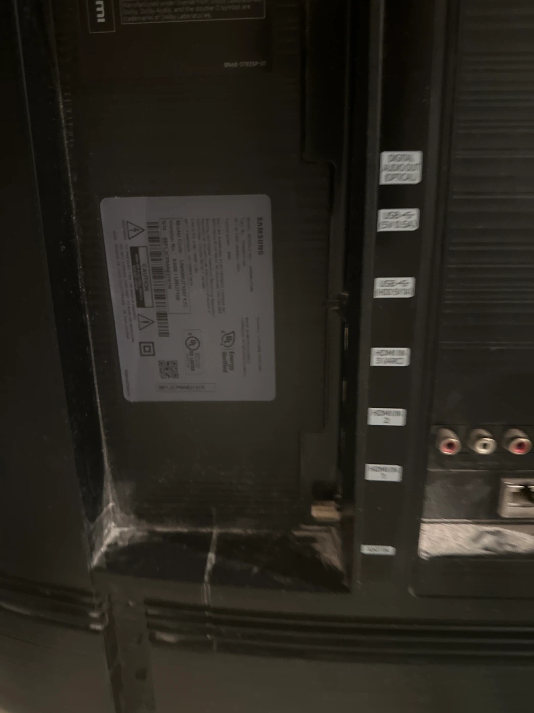 It supports apps like YouTube, Netflix, Prime Video, etc. Samsung TV that comes with its remote and stand. It's in good condition and ready for a new home entertainment setup!