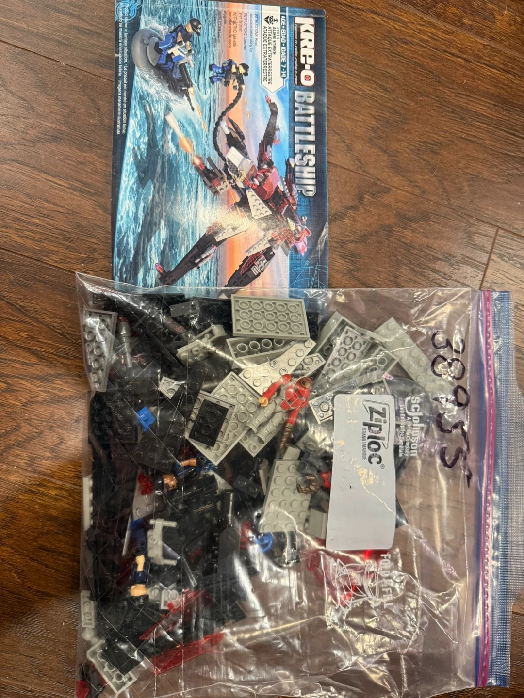 Selling a KRE-O Battleship Alien Strike building set for ages 7-14. All pieces are in the ziplock bag. Lots of fun to build with the included instructions!