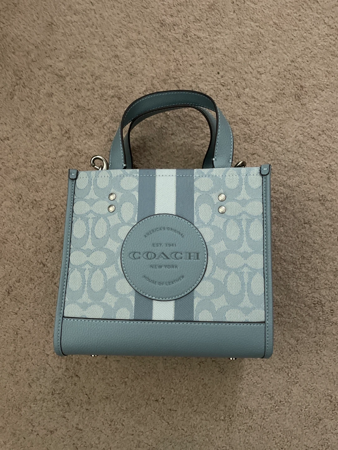 Selling a cute Coach Dempsey Carryall Tote in a lovely light blue colour. It's in great condition and ready for a new owner! Perfect for everyday use or a stylish addition to your collection. The tote features the classic Coach design and is made with quality materials. Price is negotiable