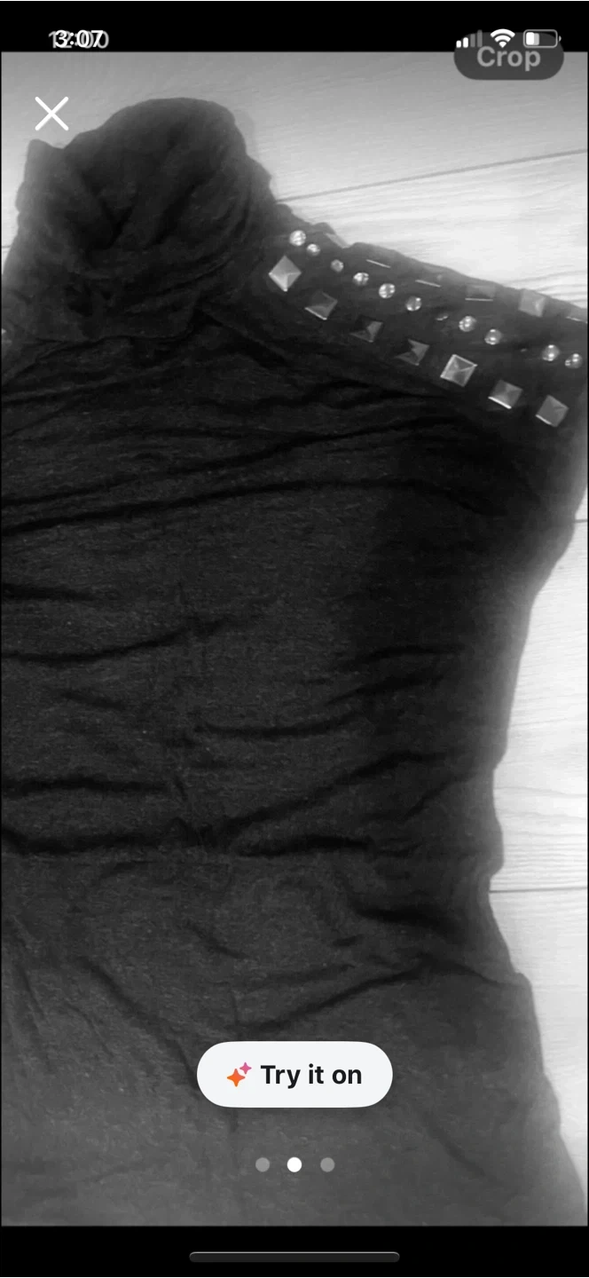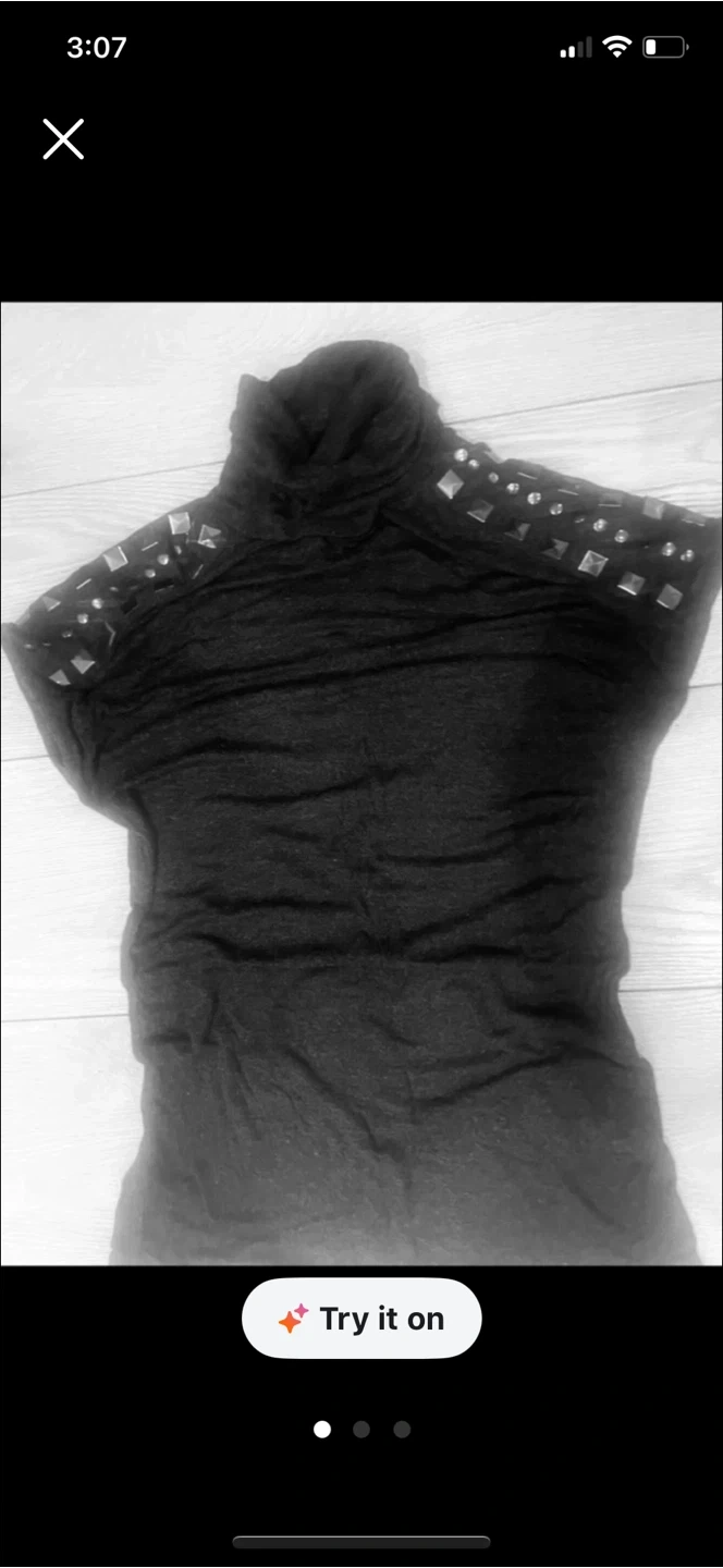 This is a black turtleneck top with unique studded detailing on the shoulders! It's in great condition and ready for a new wardrobe. Stretchy soft fabric,
