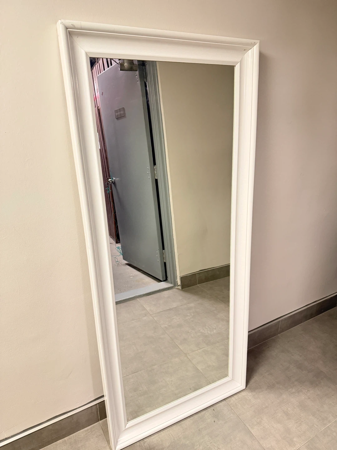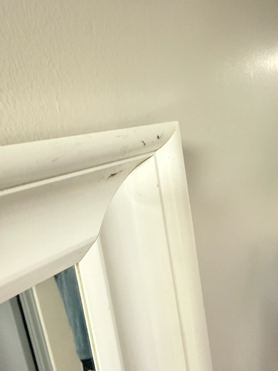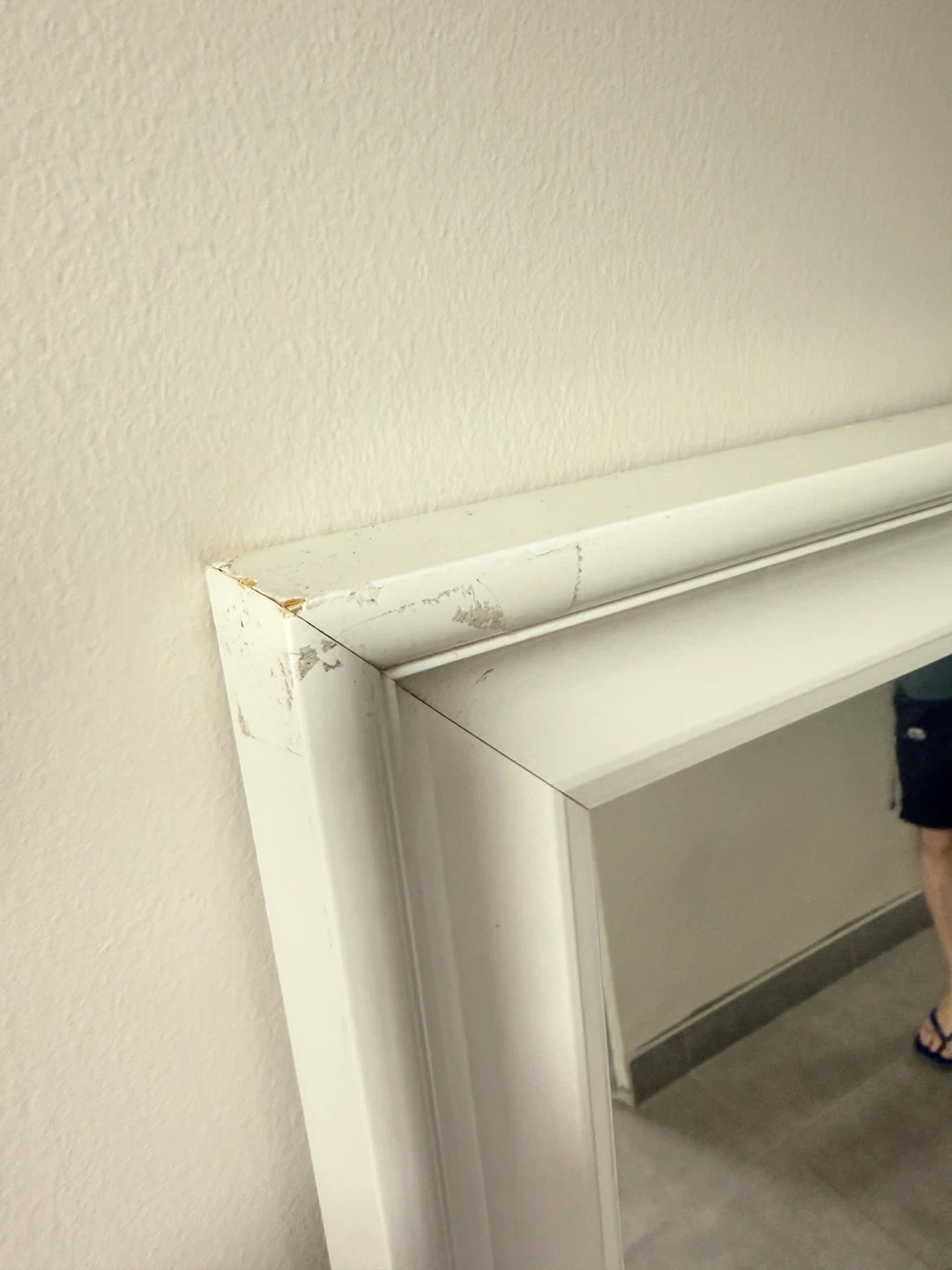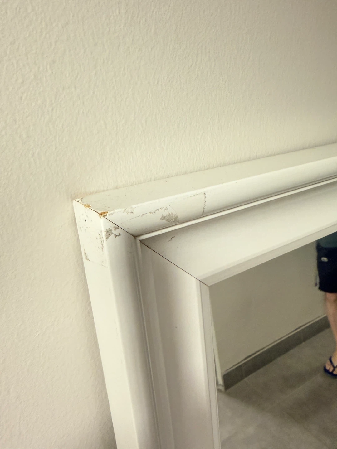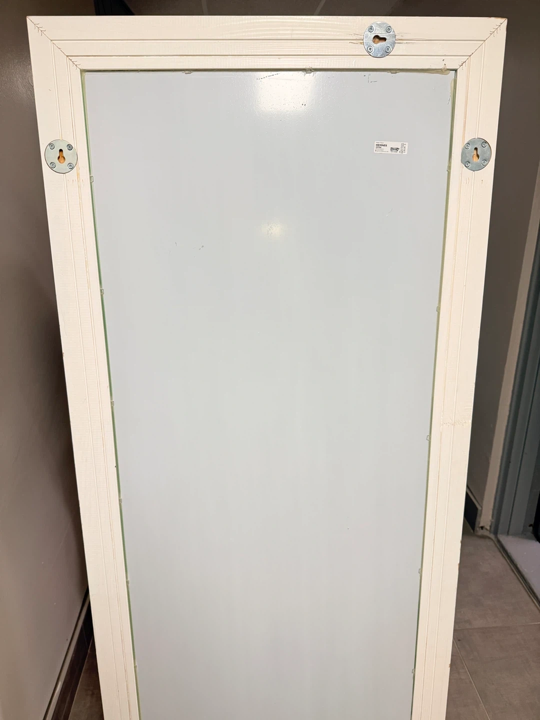 Selling an IKEA Hemnes mirror in white. There are some signs of wear on the frame.