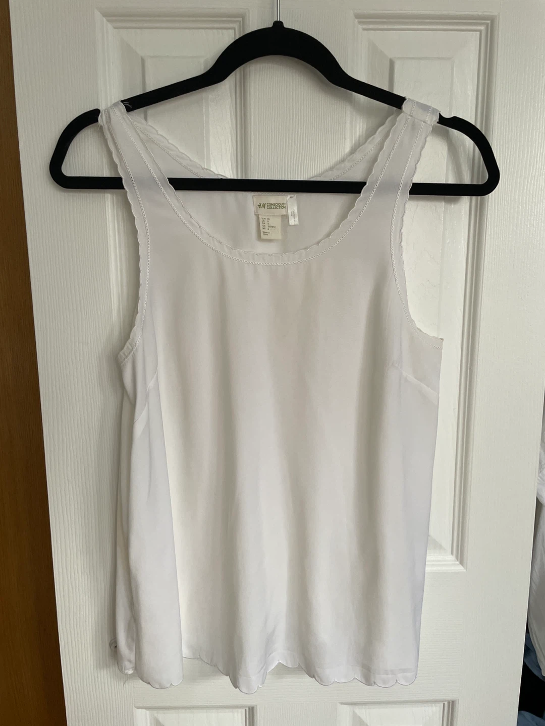 Giving away a lovely white tank top from H&M's Conscious Collection! It's a size 6 and in great condition. Perfect for layering or wearing on its own during warmer weather