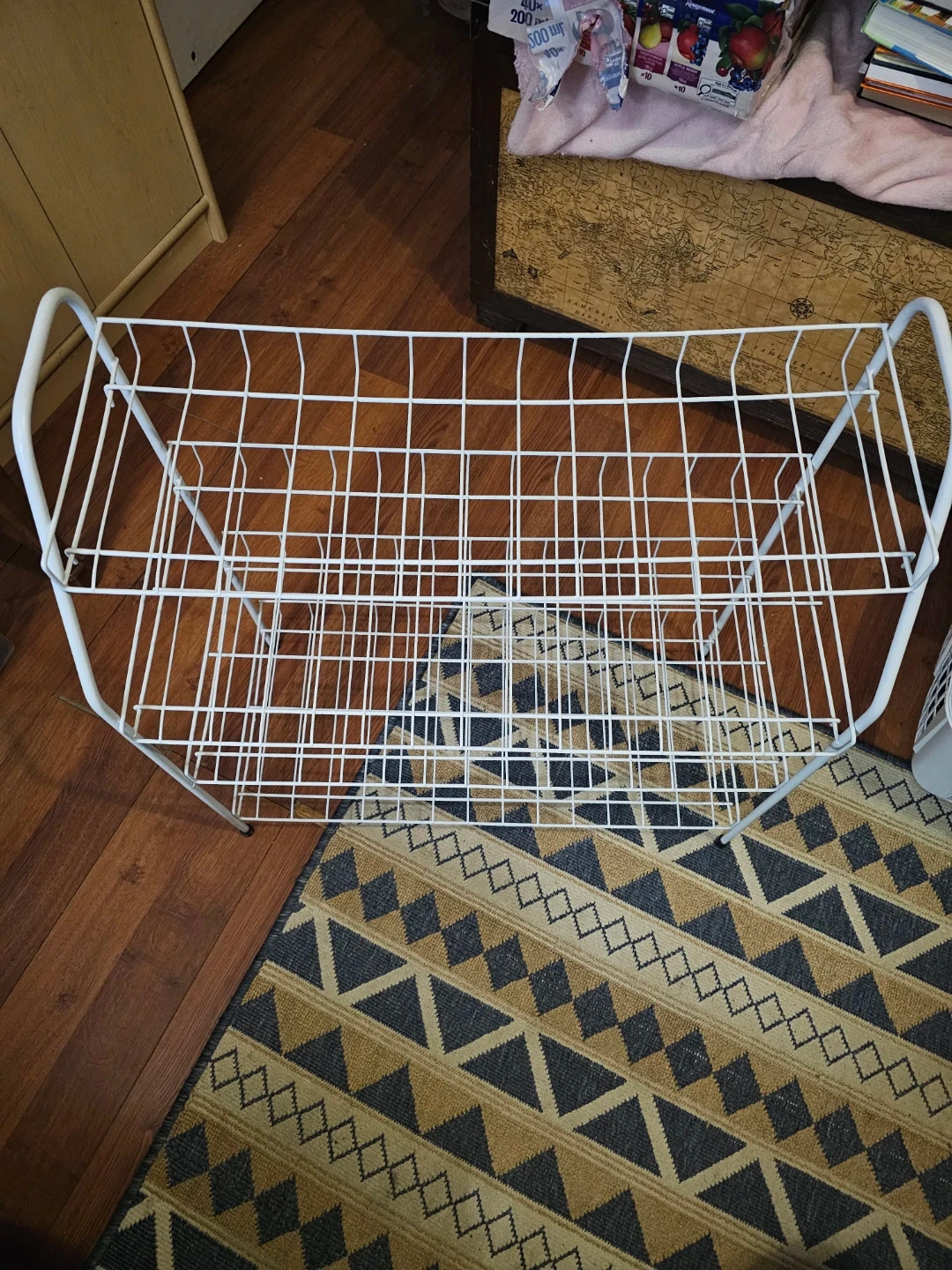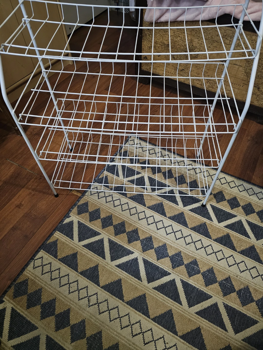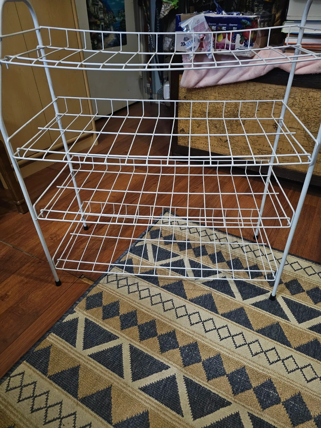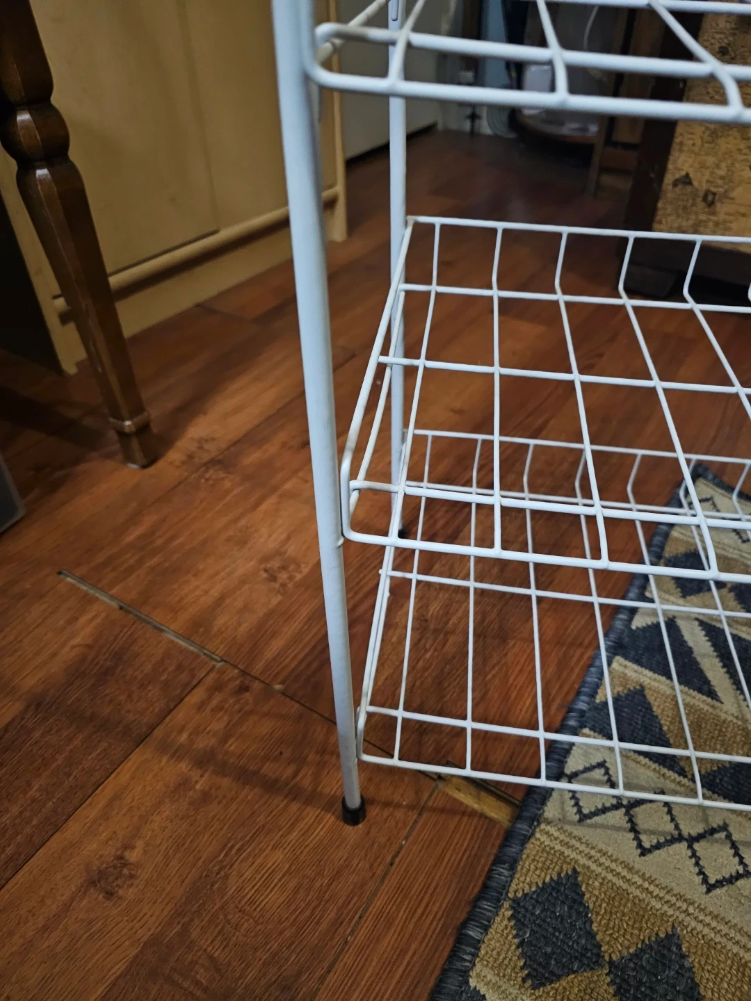 Selling a handy white wire shelf rack! It's in great condition and ready to help organize your space. Perfect for shoes, plants, or anything else you need to keep tidy