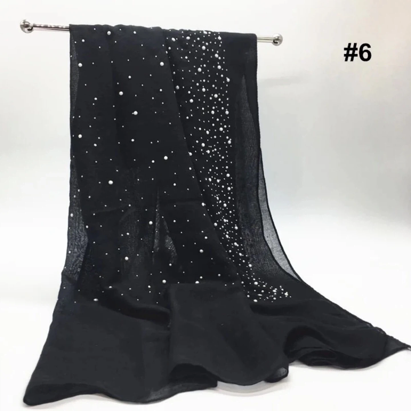 Black Scarf/Shawl/Hijab/Dupatta with Pearls & Rhinestones