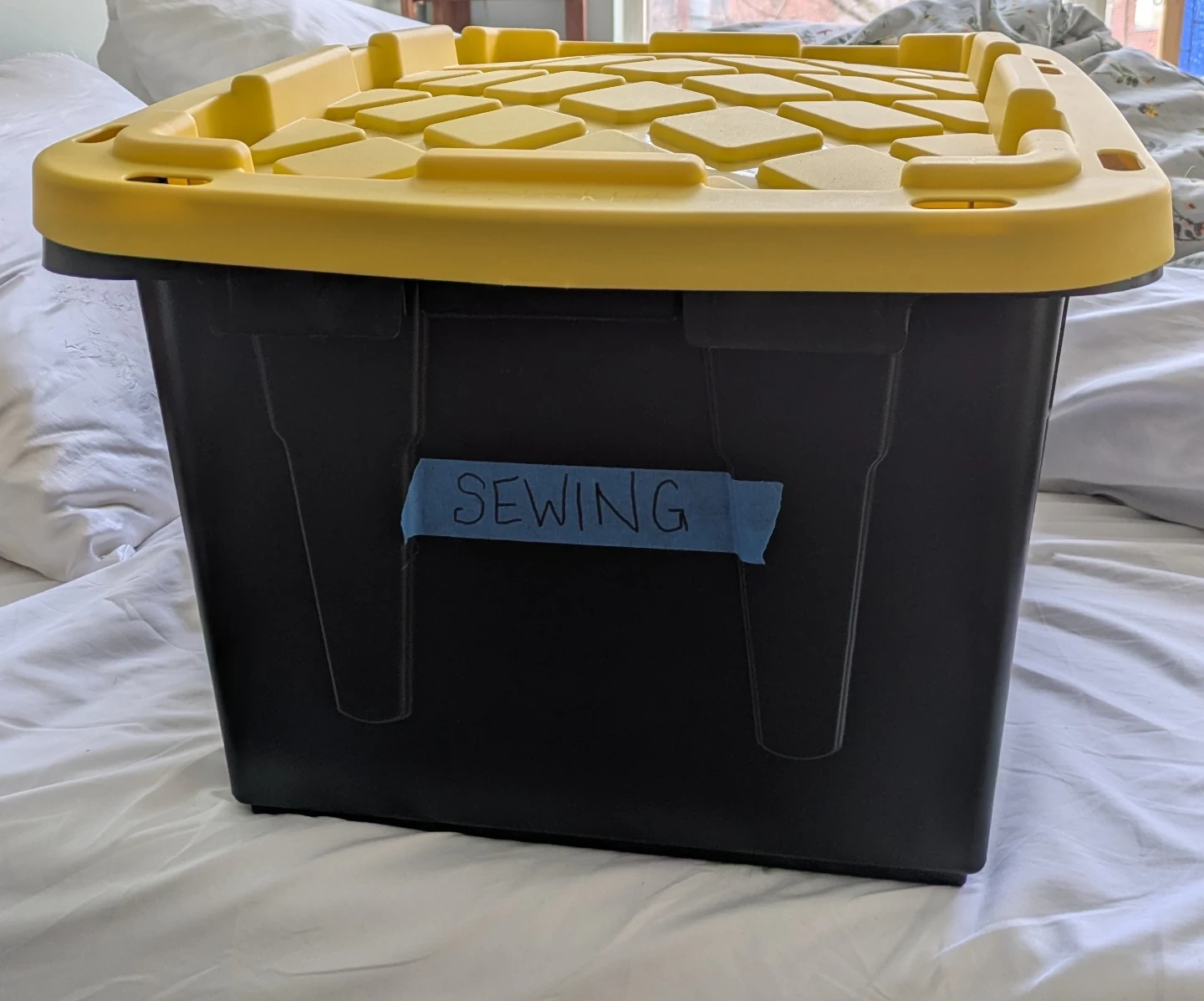 Comes with a huge amount of fabrics purchased for projects that never happened (bin shown but not included).