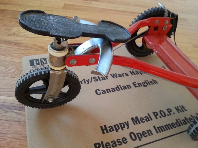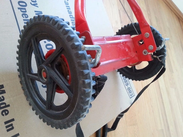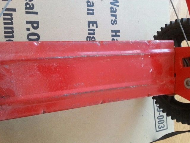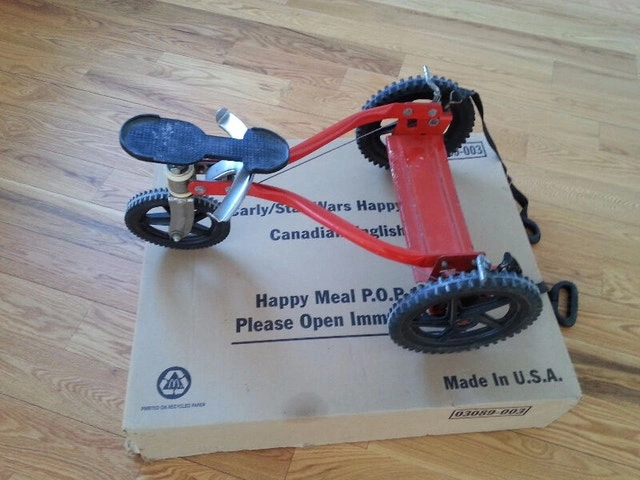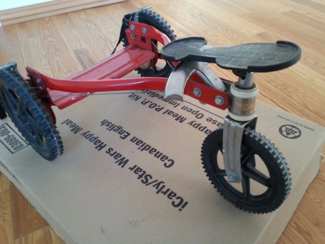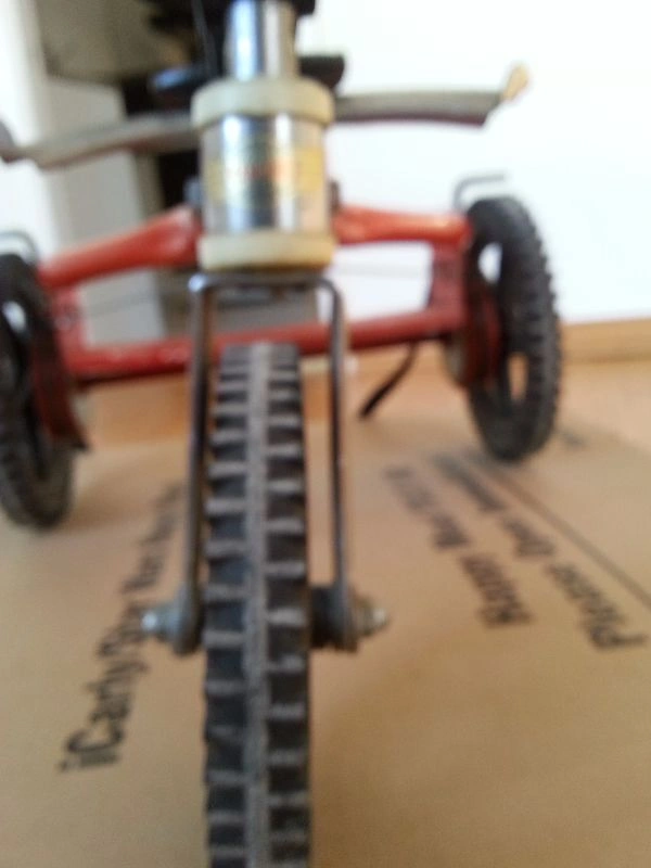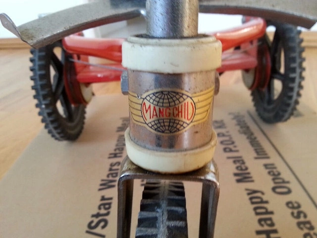 Up for sale we have this extremely Rare MangChild (Mang Chui ) Child Hand Pulley Stand-Up Tricycle. A one of a kind tricycle Made for Children by some Mad Scientist Back when there were No Regulation on Kids safety. A very Dangerous Contraction made mostly of Steel. I’m not really sure of the Maker of this toy or when and why it was made. Can still be use for what it was made for but really this is the most conversational piece I have ever seen for any Bicycle or tricycle enthusiast. This item would make a great show piece. If anyone as any info on this piece I would be glad to hear them. A very Rare and nice piece to complete any collection or to ad to your man cave Asking $1500.00 If interested please contact Michel at 613-709-3013 Thank you