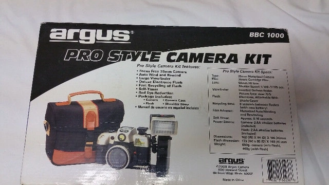 Up for sale we have A New Argus BBC 1000 35mm Pro Style Camera Kit -New In Box Please view photos for more info. Asking $40. if interested please contact Michel at 613-709-3013 Thank you.