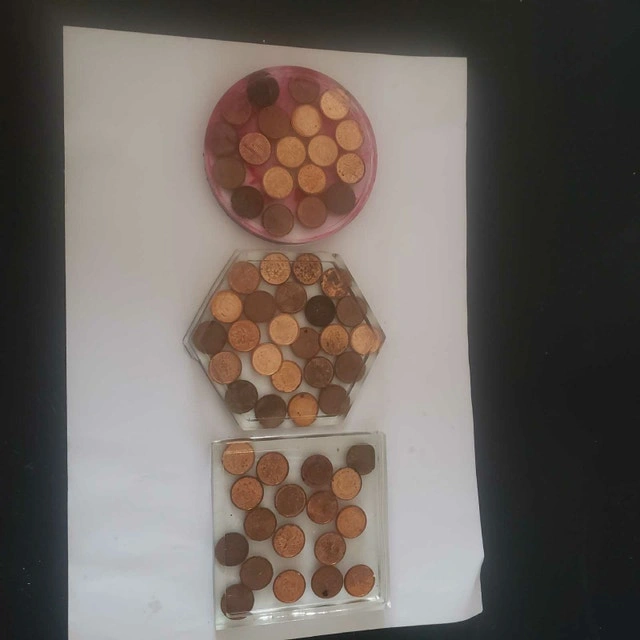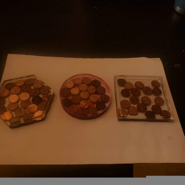 Up for sell we have a choice of 1 of 3 epoxy Canadian copper penny coster in new condition 2 of them as a American penny in it. Asking $25 each all 3 for $65 pick up on Old Richmond Road Nepean thank you