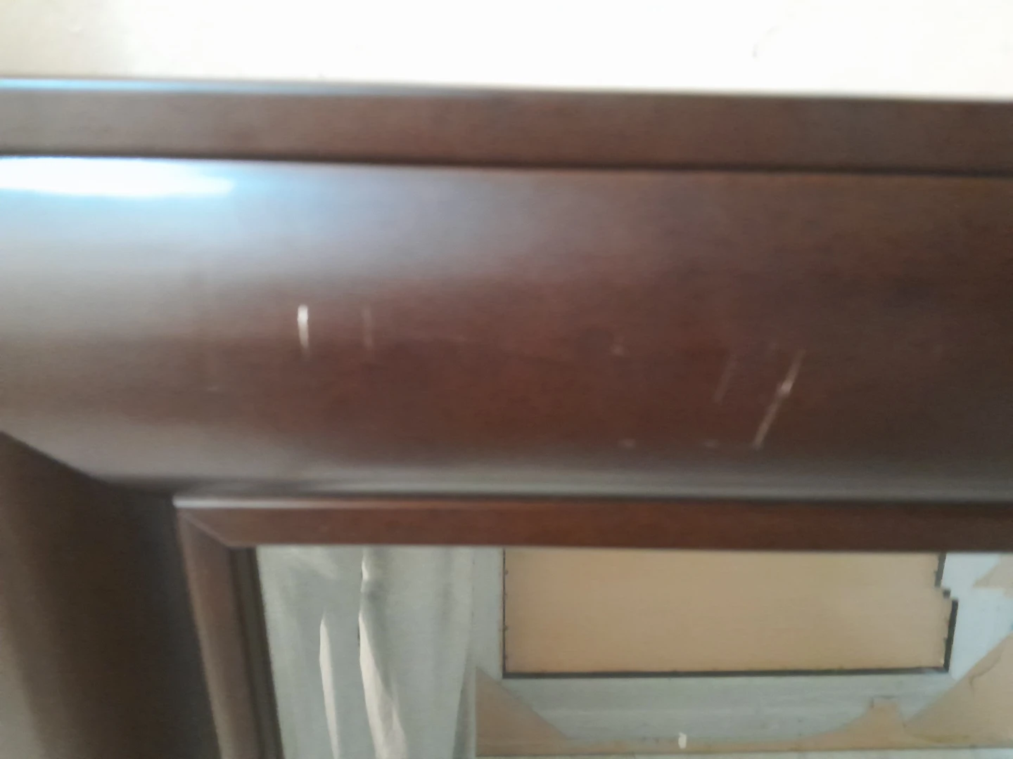 Selling a framed mirror with a brown frame. There are some visible scratches and damage to the frame, as shown in the pictures. It's a great mirror if you're looking for a project or something rustic the dent is not noticeable when on the wall its the back part of the frame