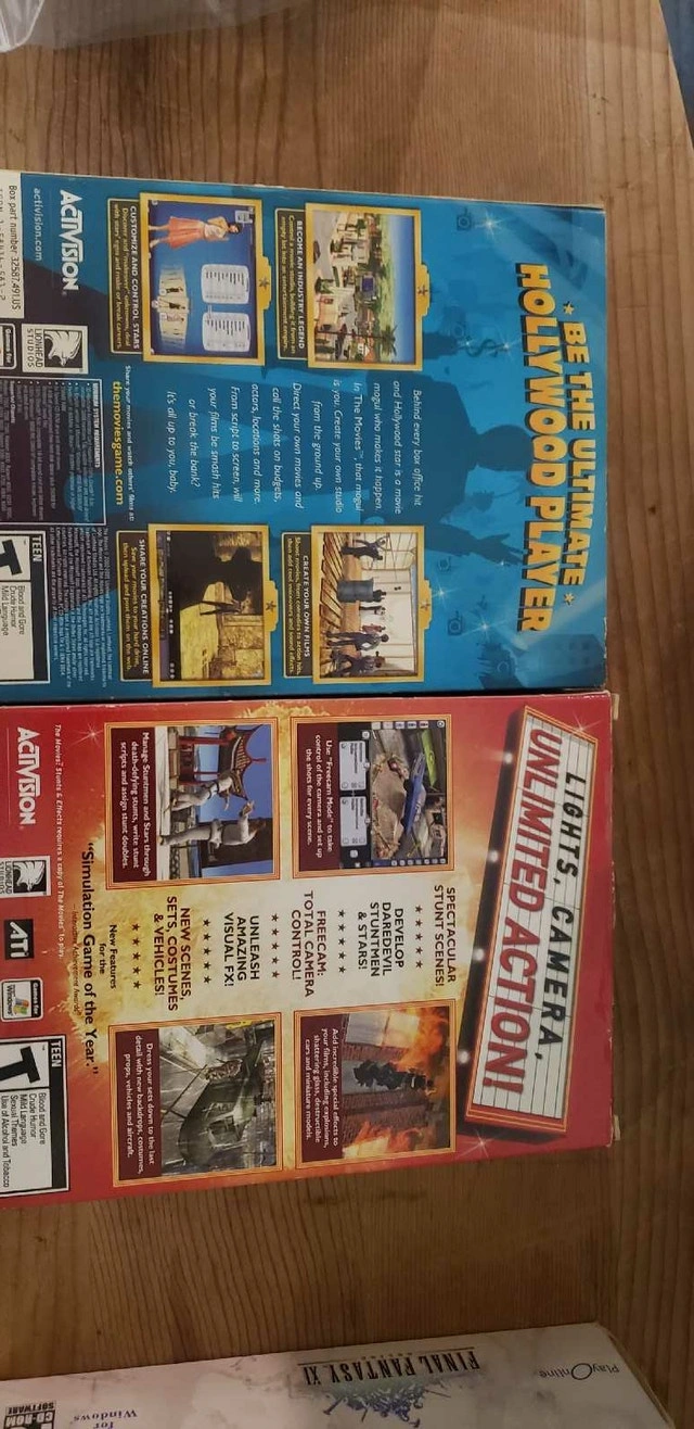 ASKING $20 FORBTHE LOT PICK UP ON BEAVERBROOK LANE KANATA 2 set of The Movies Stunts Effects Cd pack UP FOR SELL WE HAVE 2 set of The Movies Stunts Effects Cd pack The Movies, Stunts and Effects Reviewed in the United Kingdom on August 25, 2011 Players of The Movies can now bring their studio lot up to date thanks to the Stunts & Effects expansion pack. While it doesn't quite give you WETA at your fingertips, it does introduce stuntmen (and women), new sets, action movies, and includes enhancements to the movie making tool that shipped with the original game. All this integrates into the game rather seamlessly, and after a while you'll wonder how you ever got by without it. Stuntmen function in pretty much the same way as the actors you employ, so you'll have to build training facilities, pick the suitable stuntman for the role, and even send them to hospital every now and again in order for their rather battered and bruised bodies to recover. As with every aspect of The Movies, the goal is to do things before your competitors, and the expansion introduces stunts and special effects into the mix. Whether it's the use of 'Blue Screen' technology or filming in a miniature set, doing so in a film released before that of another studio will earn the movie great reviews and bring in large amounts of cash. Stunts & Effects is an expansion, and therefore will only be of interest to fans of the original game, and as such does its job of extending the game pretty well. The new sets, vehicles and costumes add another element to the movie making pie, and while the same old problems remain, the gameplay is as engrossing as ever. Wannabe movie makers will also find their lives taken away from them thanks to the newly improved movie making tool. Could The Movies live without Stunts & Effects? Probably, but it's more entertaining thanks to the additions found in the expansion.