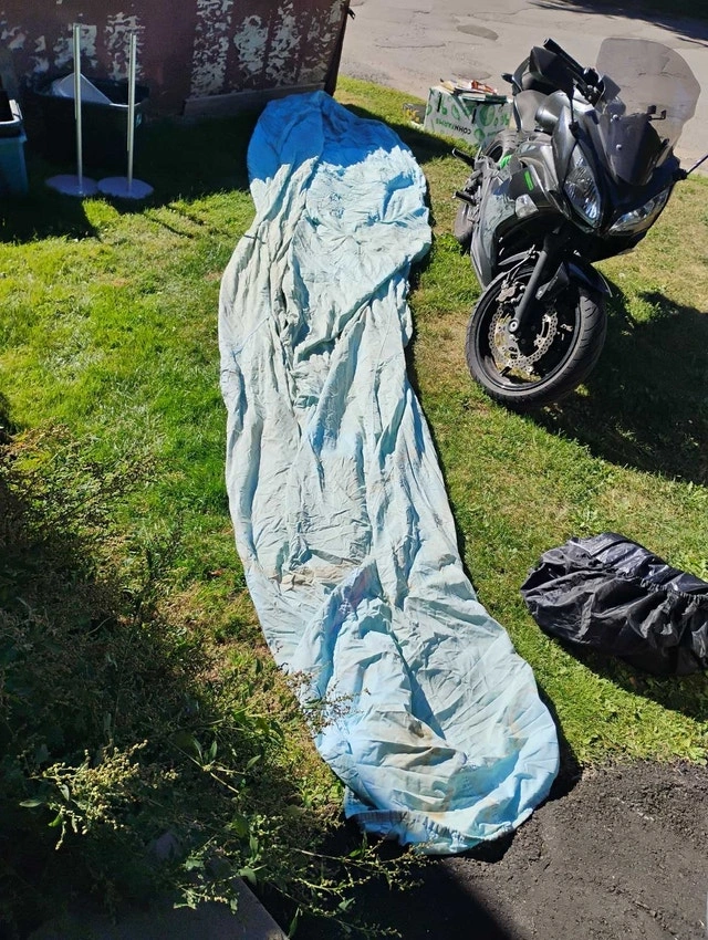 For sale is this 1976 Cadillac Eldorado material car cover tarp could use a was it as stain on it but they should all come out By washing it will fit other big cars asking $75 pick up on Beaverbrook Lane Kanata thank you