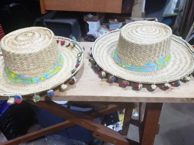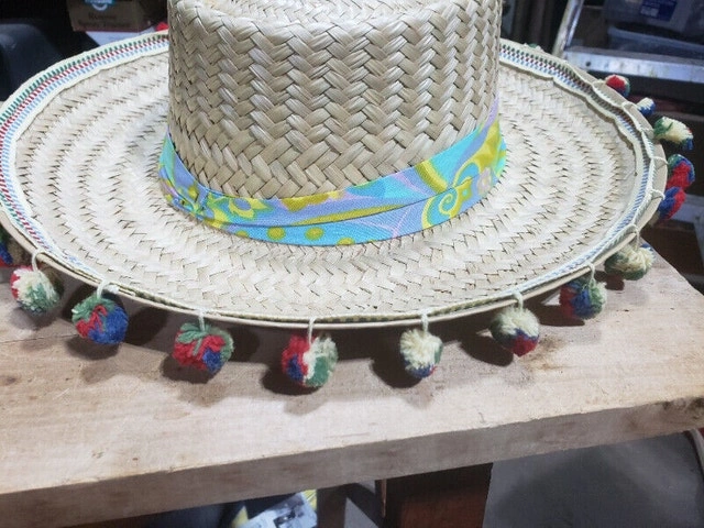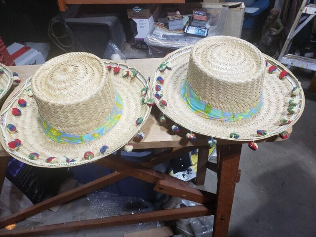 Up for sale we have these brand New Vintage Hand Made Straw Hat made in Mexico in the 1960’s they are size Medium Large The are 15”x 12” wide by 4 1/4” deep the head opening is 8 1/4” by 6 3/4” wide asking $20 each or 3 for $50 pick up on Old Richmond Road in Nepean