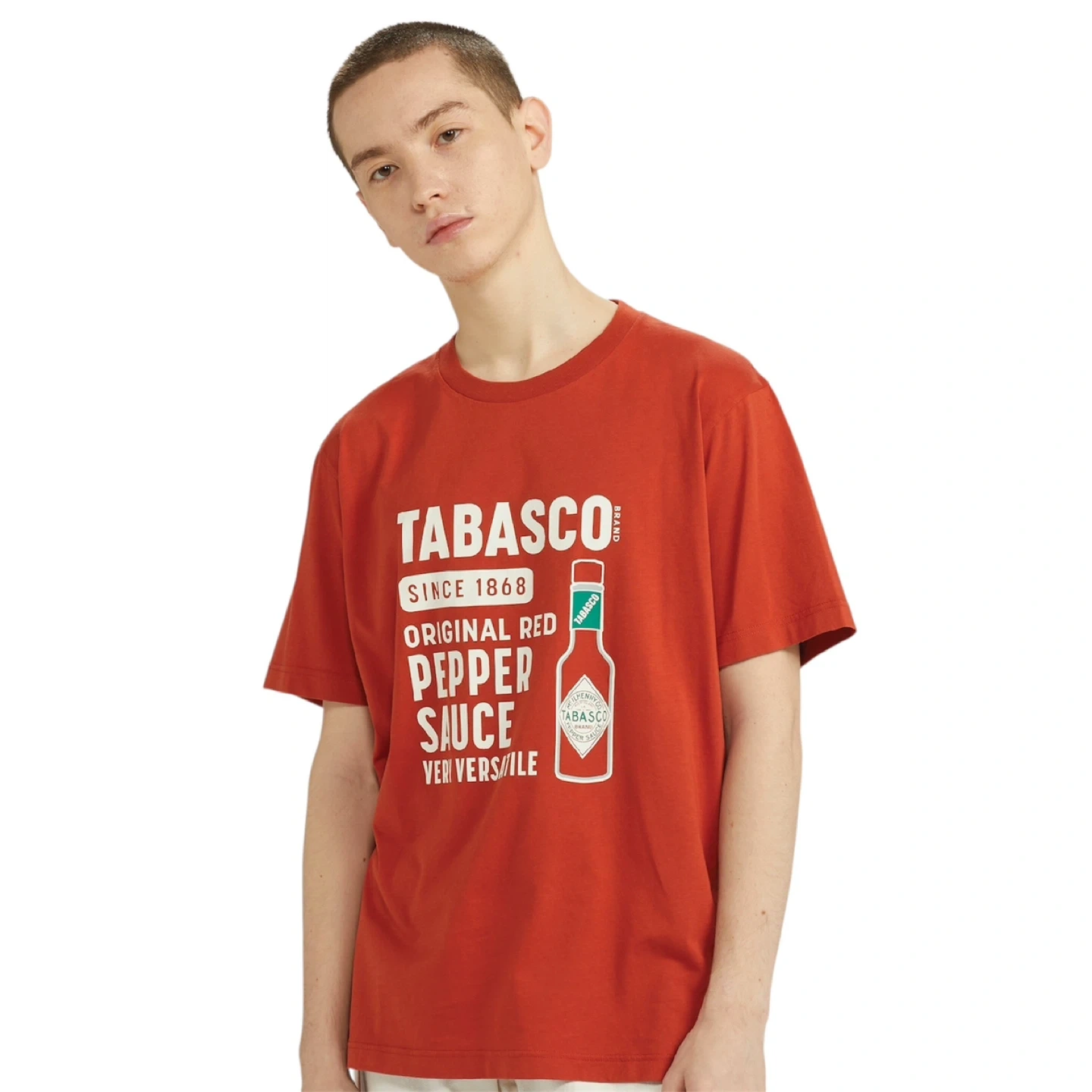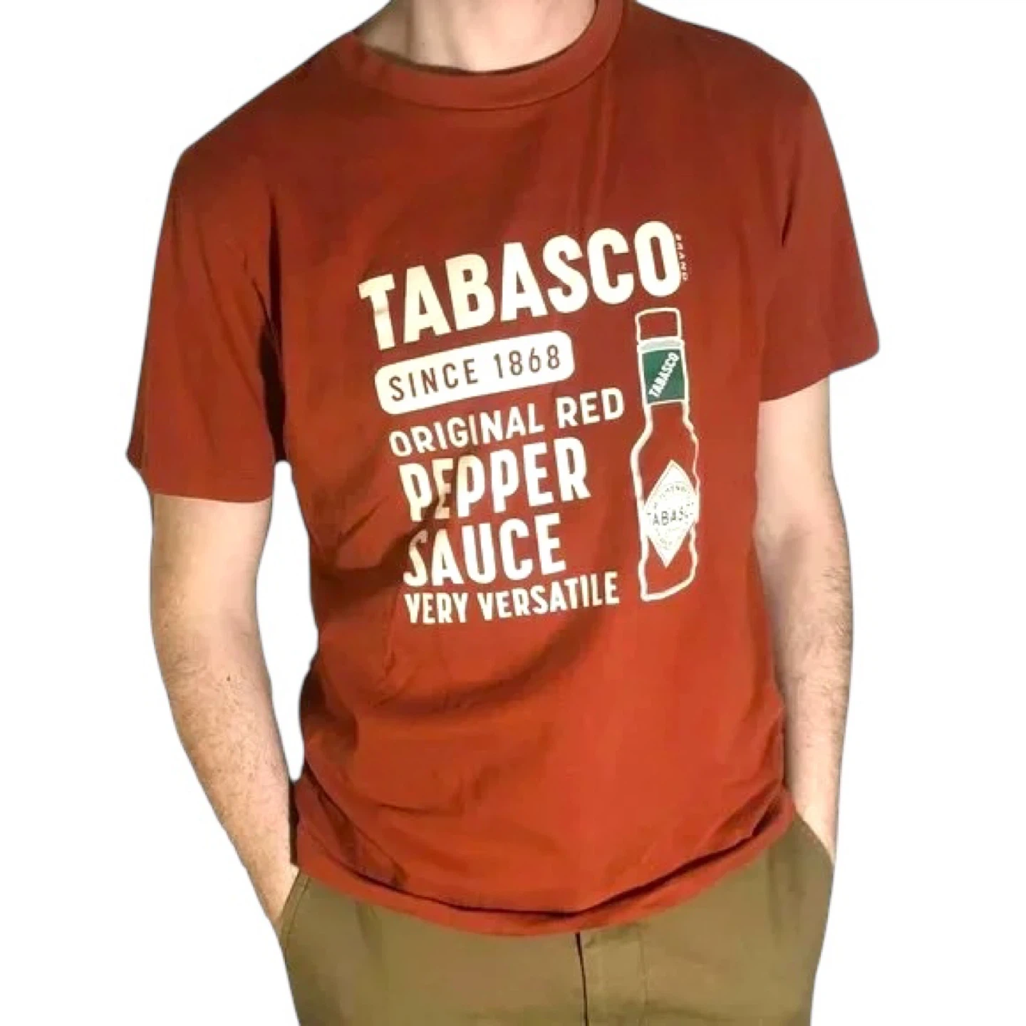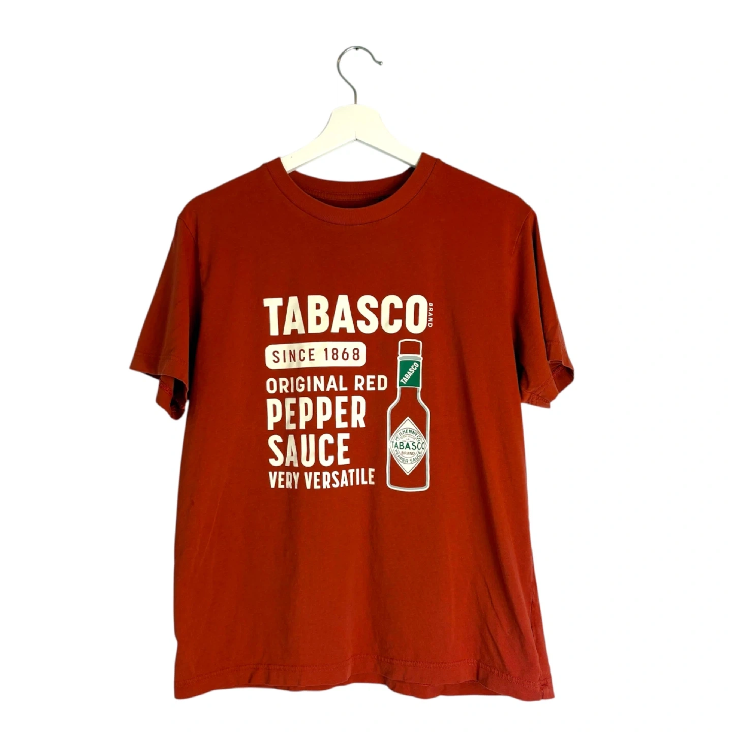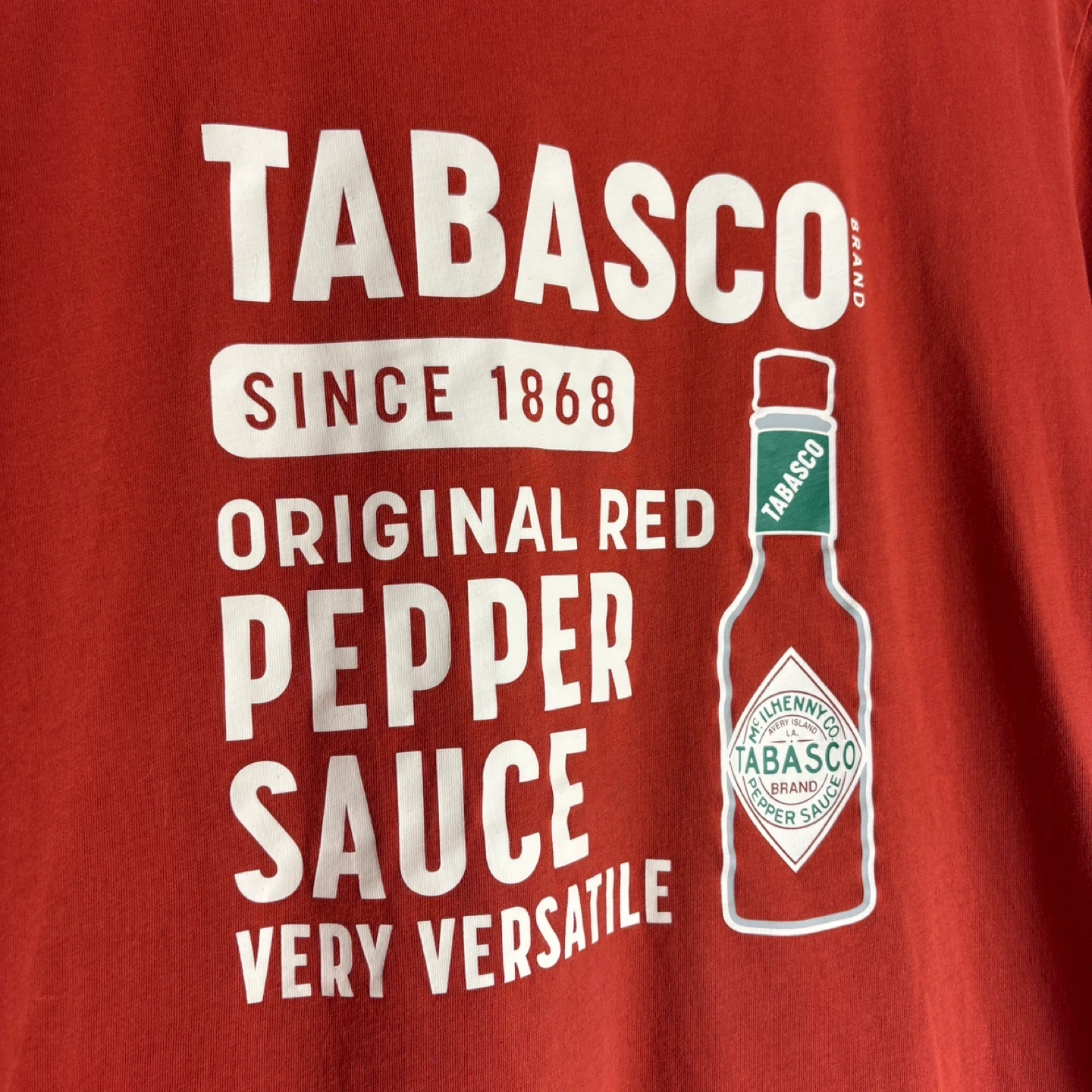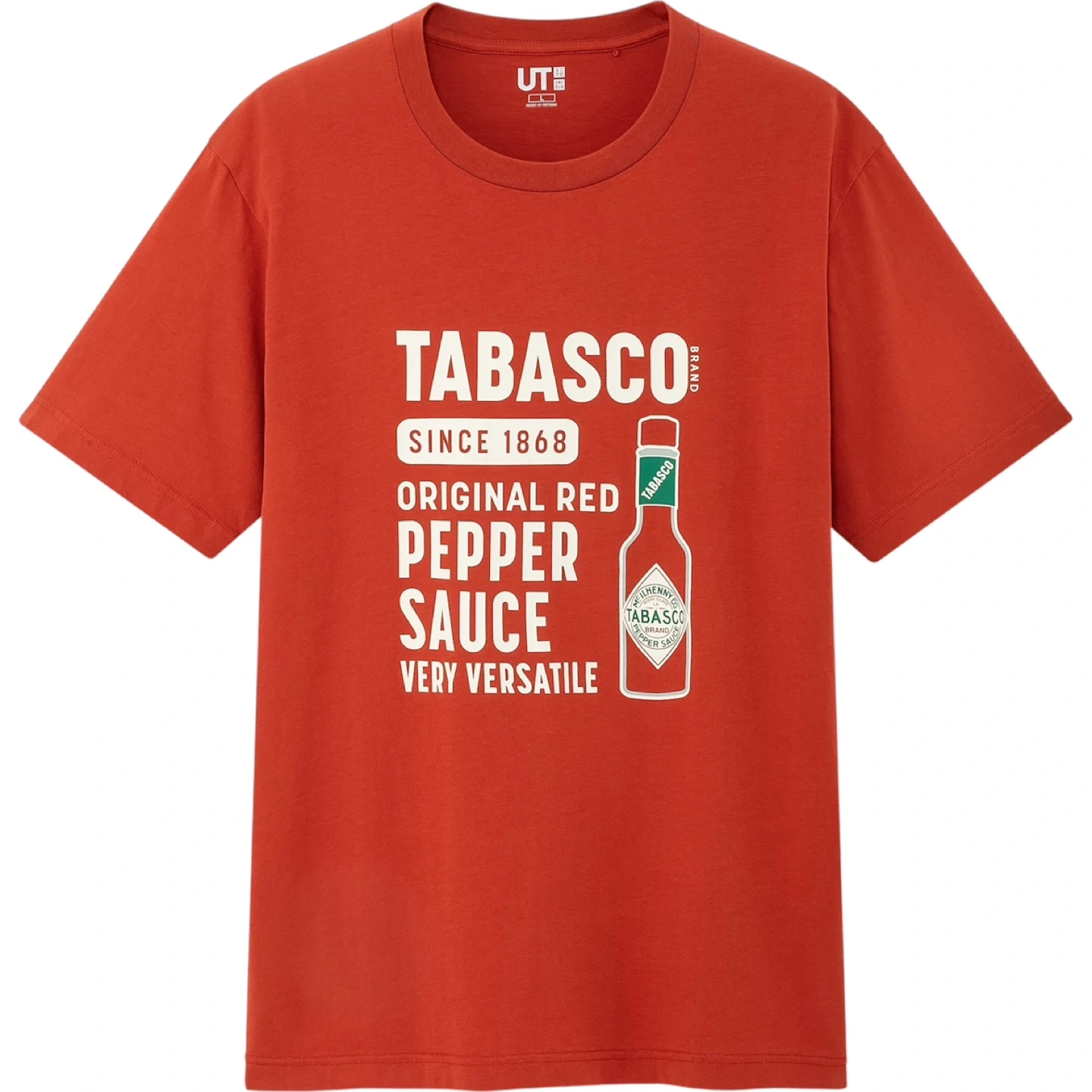 Styles: uniqlo ut, tabasco shirt, graphic tee, logo t shirt, streetwear, casual wear, everyday, classic, minimalist, normcore, quirky, influencer, instagram, gift, giftable, foodie shirt, novelty tee, red t shirt, short sleeve tee, unisex style, layering, summer, festival, retro, basics