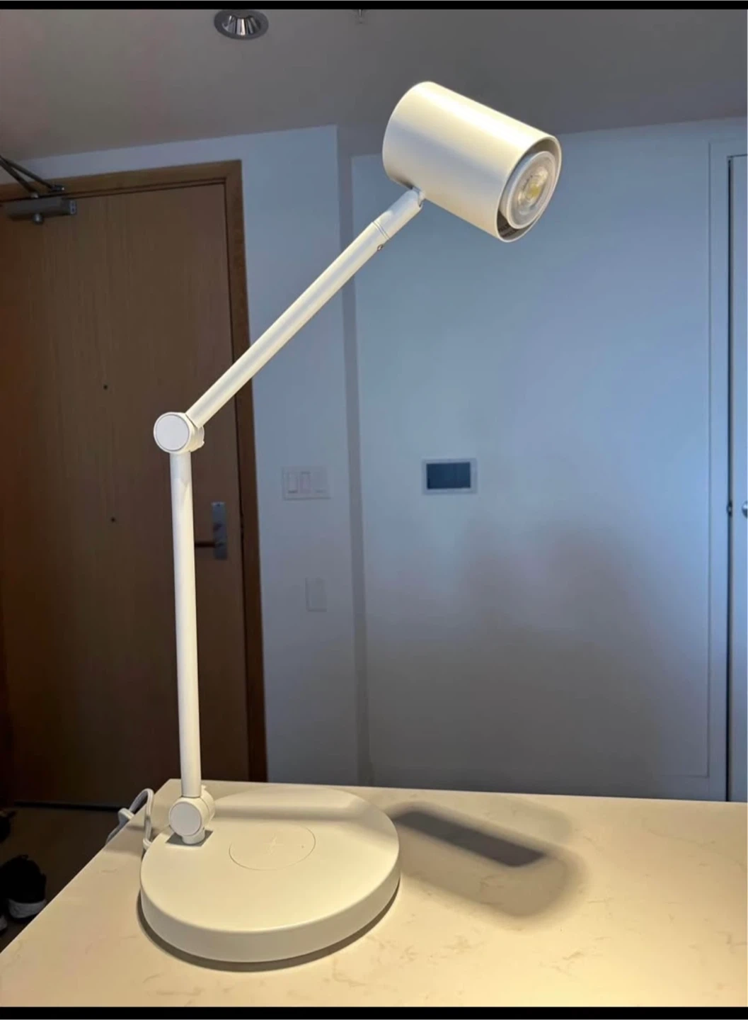 Selling a white IKEA Tertial work lamp. It also functions as a wireless charger for your phone! Great for a desk or bedside table. Used 2-3 times and the light bulb inside can be changed