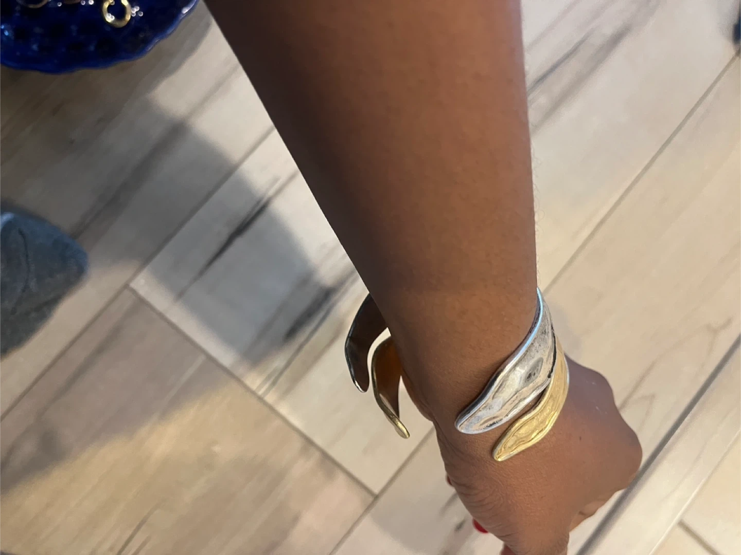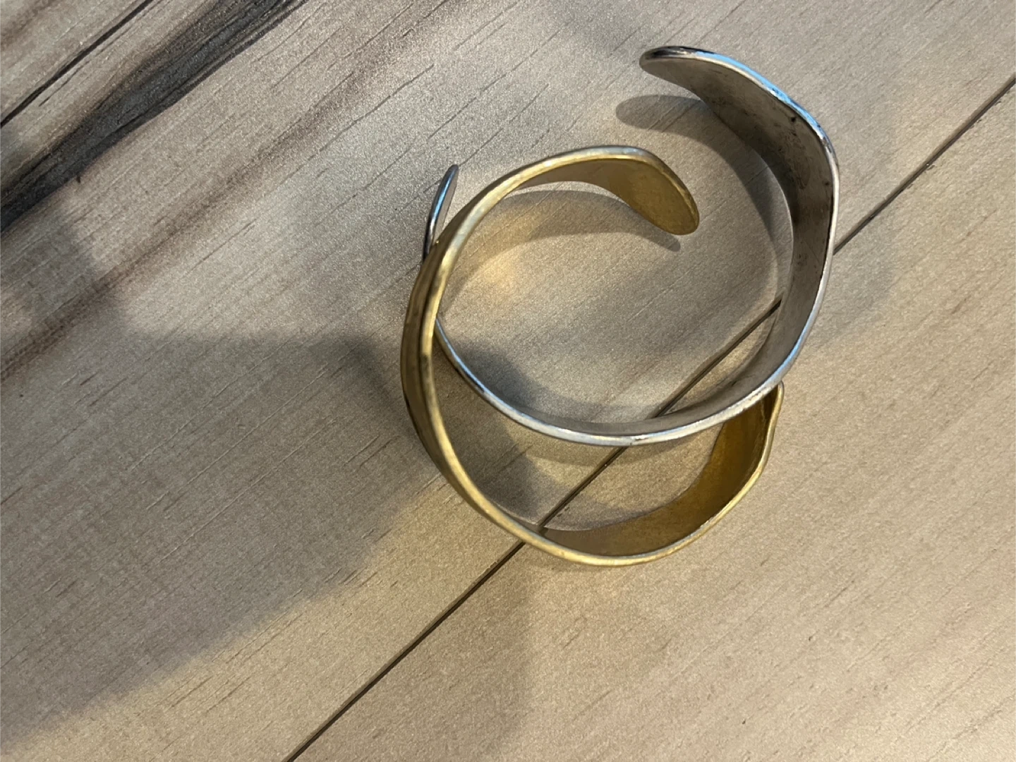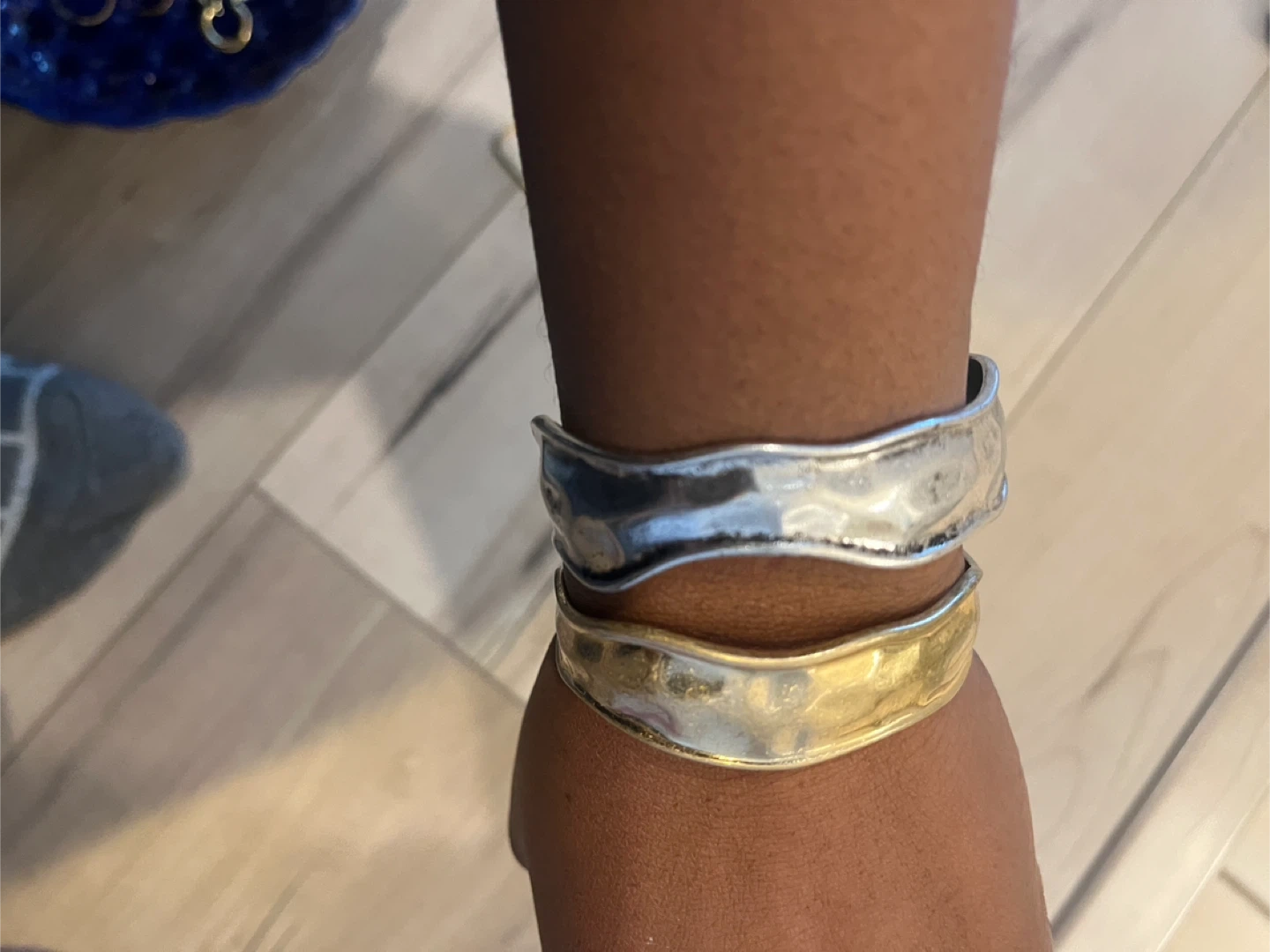 2 cuff bracelets! It features a unique design with both silver and gold-tone metal distressed look . Perfect for adding a touch of elegance to any outfit