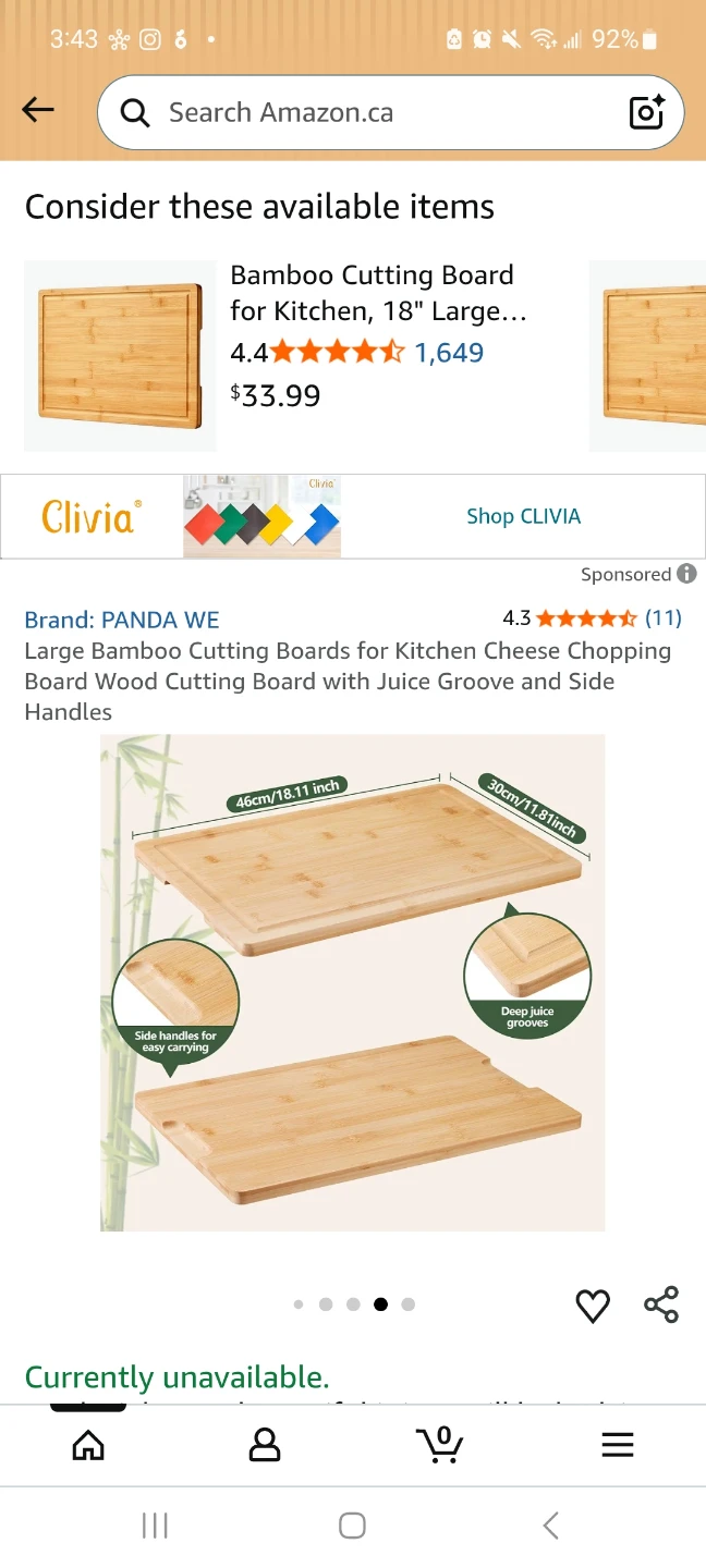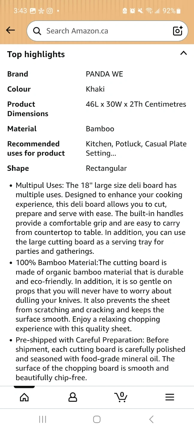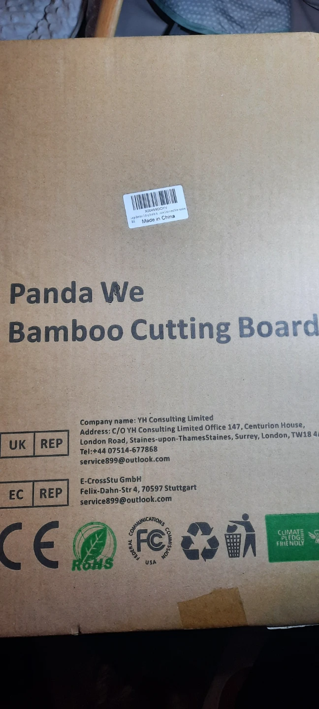 Selling a large bamboo cutting board by Panda We. It's 46L x 30W x 2T centimetres in size (approximately 18 inches). This rectangular cutting board is made of organic bamboo material, making it durable and eco-friendly. It's pre-shipped with careful preparation, seasoned with food-grade mineral oil, so the surface is smooth and chip-free. Never opened, bought this but it's larger than my wife wanted. Never opened.