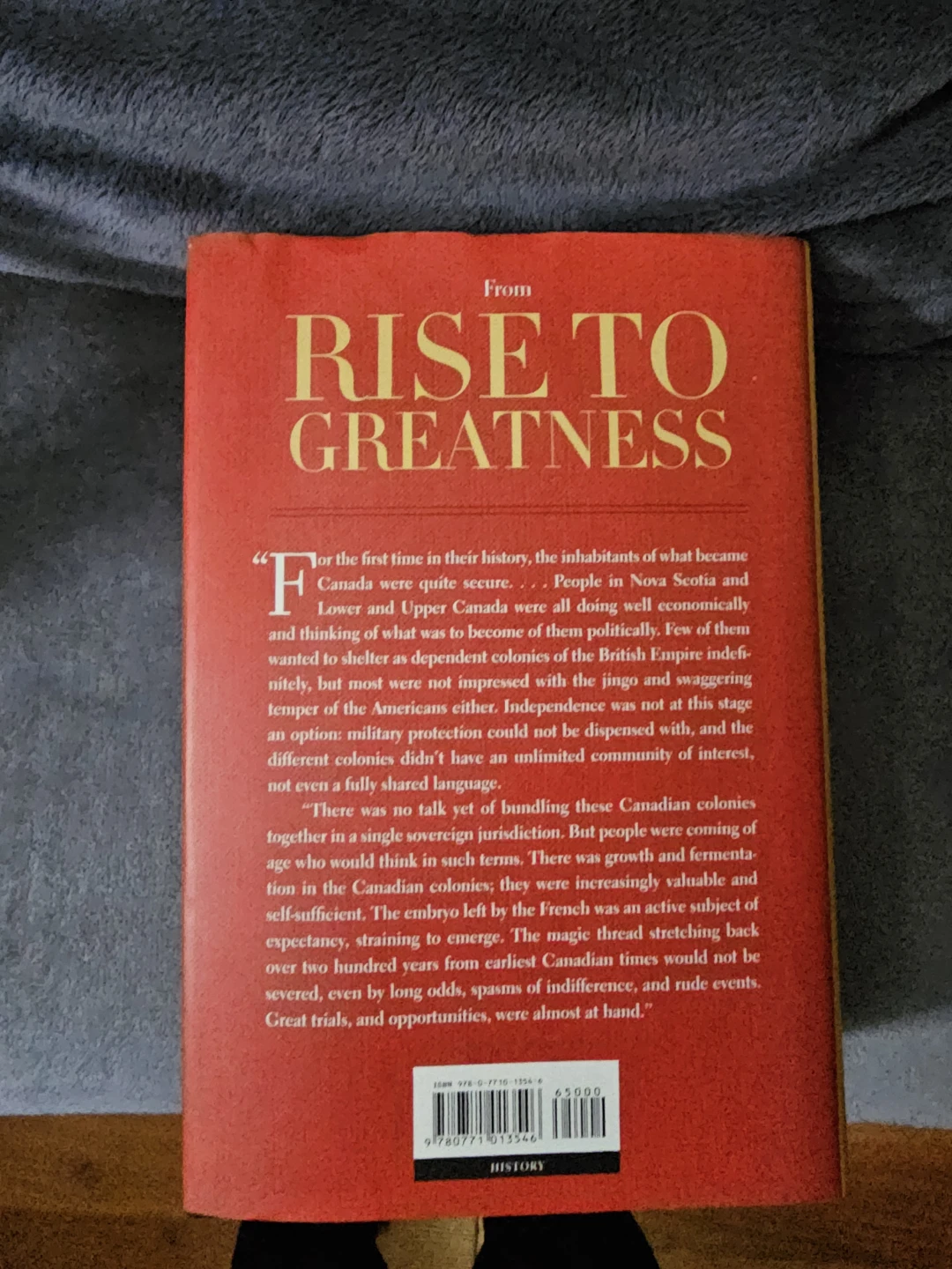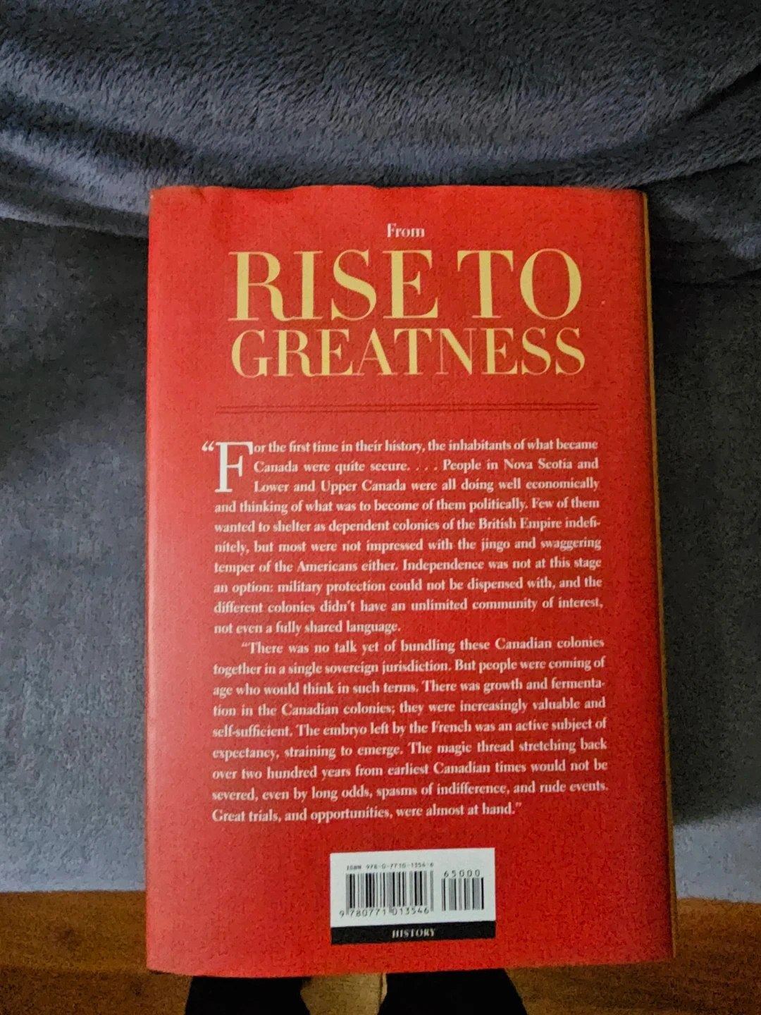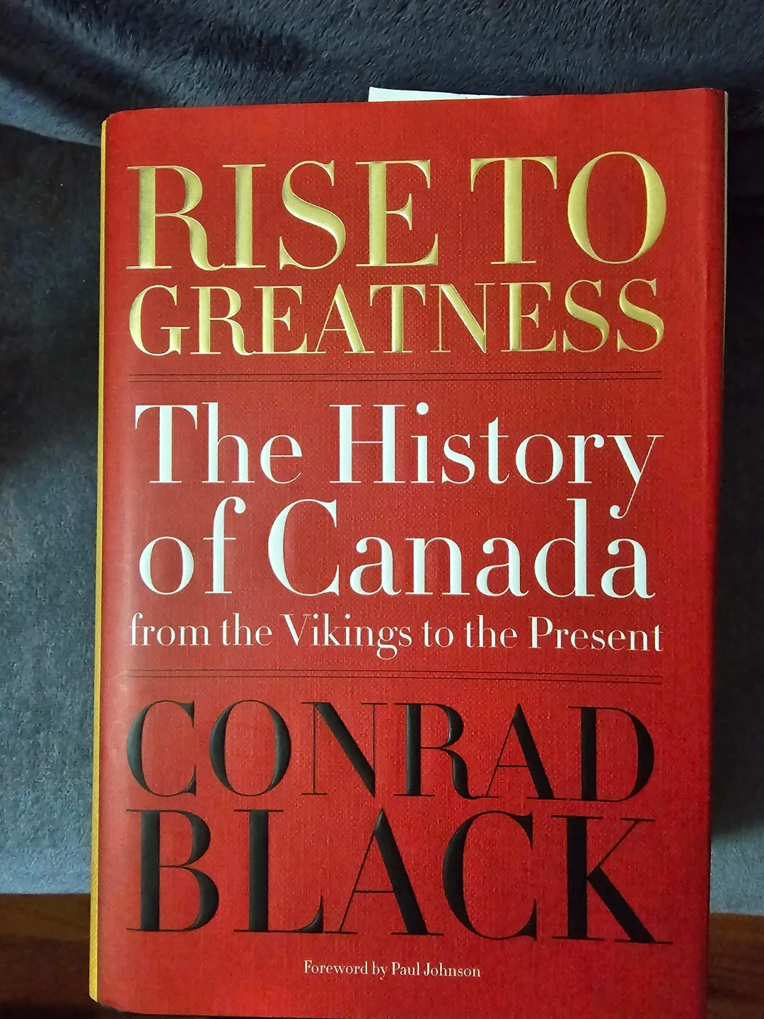 Selling a copy of "Rise to Greatness: The History of Canada from the Vikings to the Present" by Conrad Black. It's a fascinating read about Canadian history! Originally bought for $50.00.