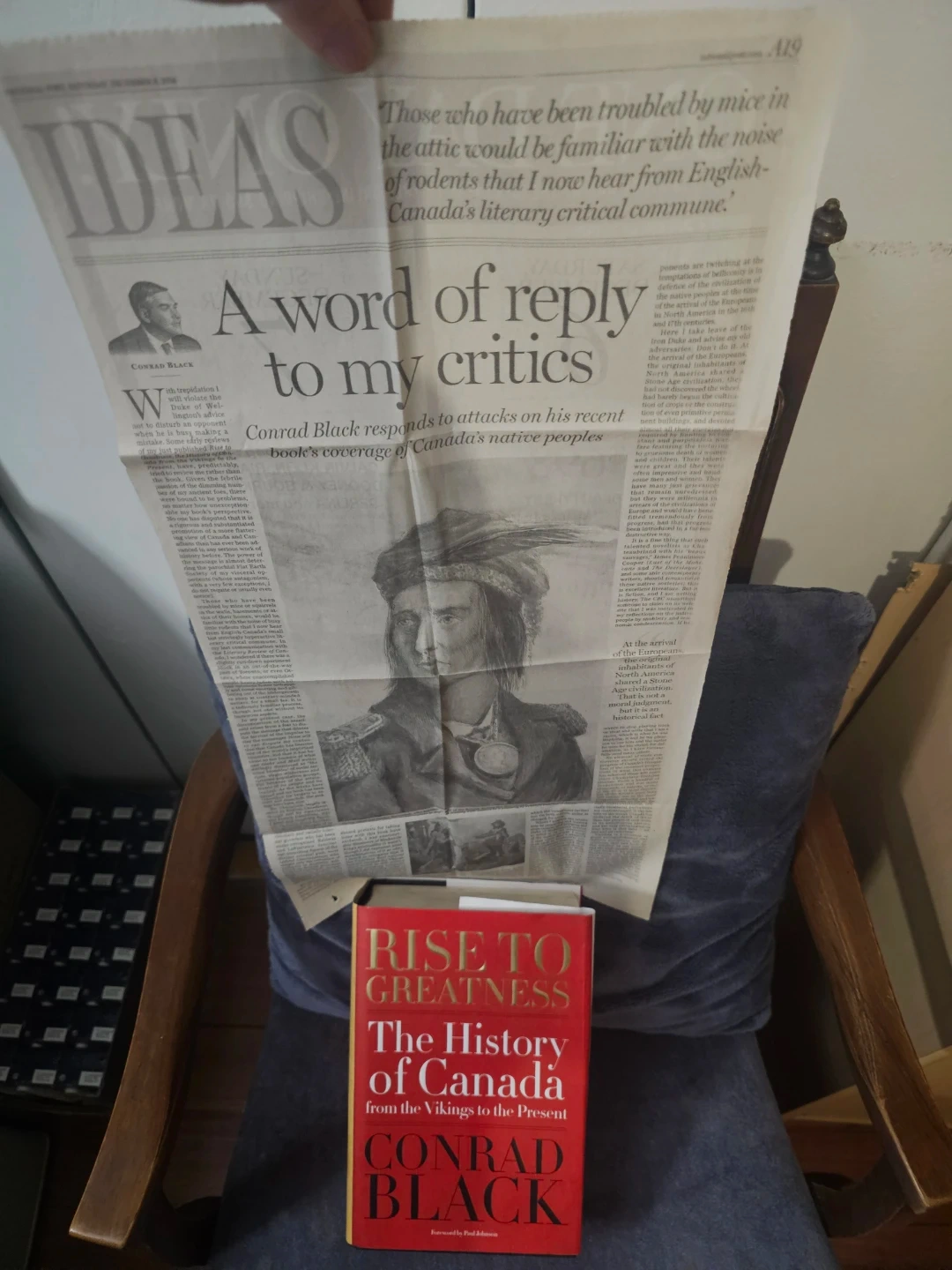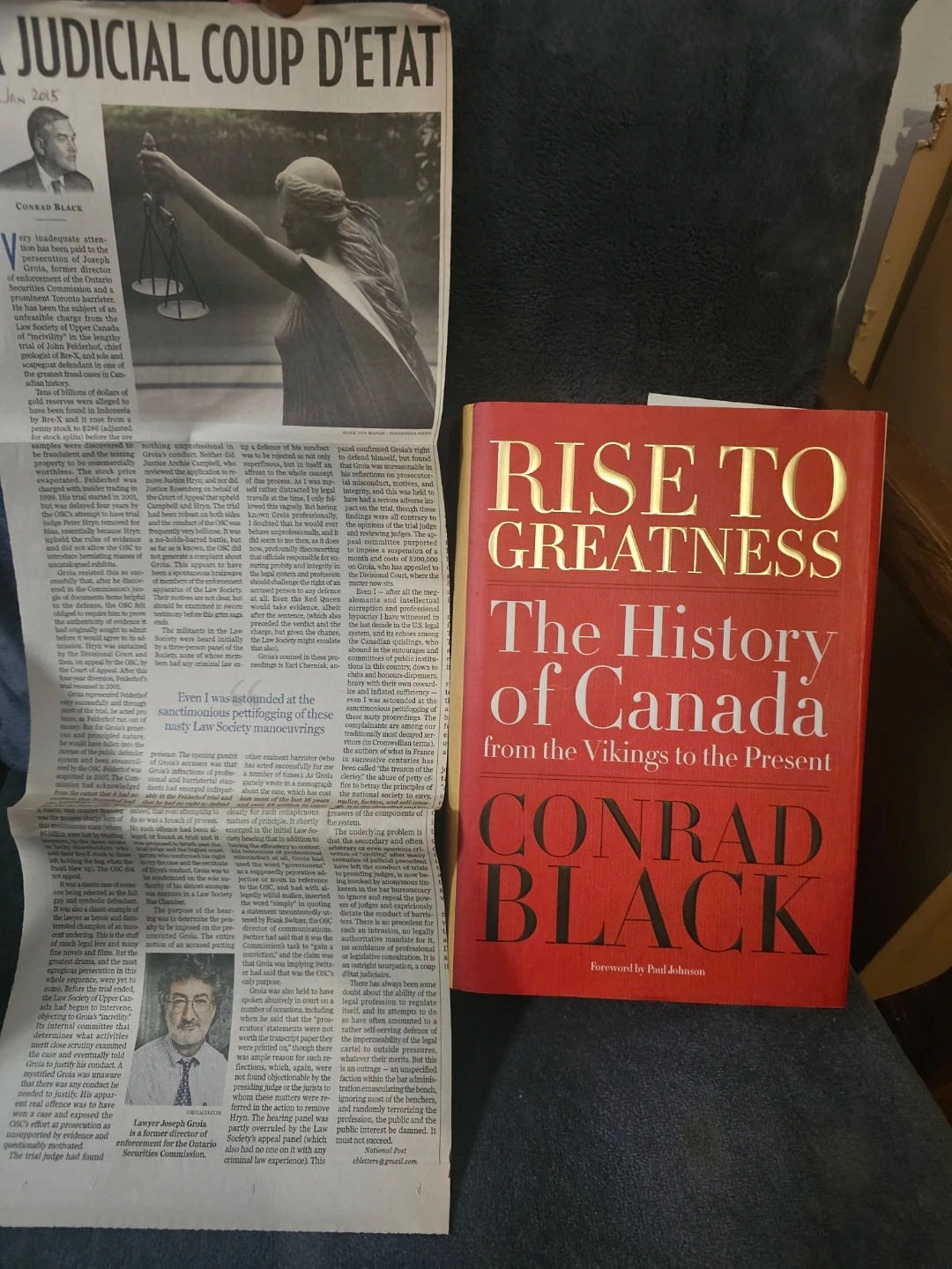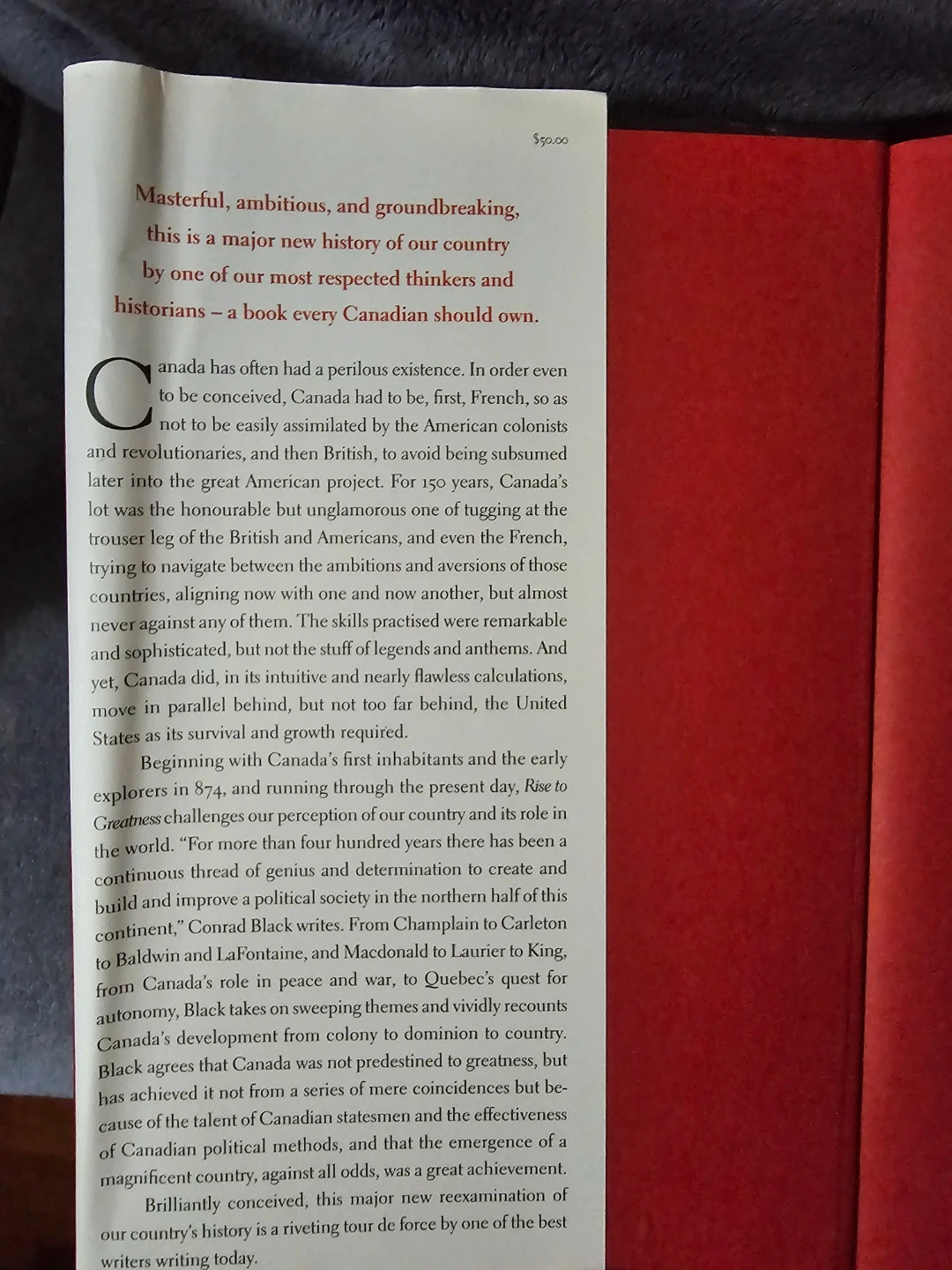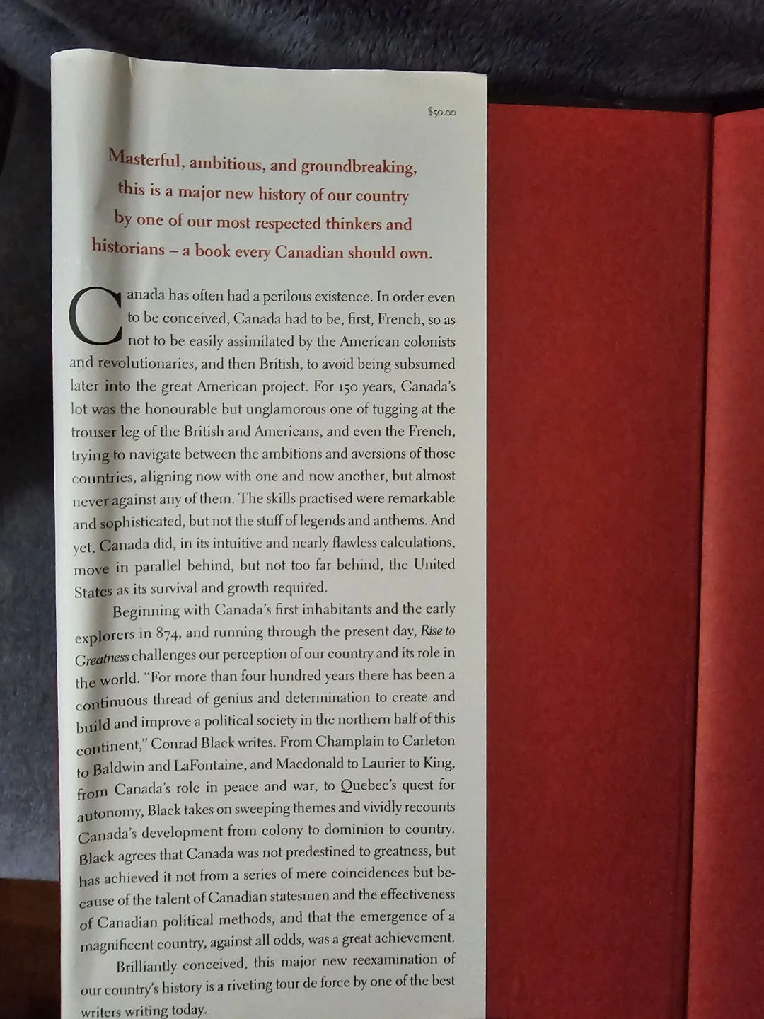 Selling a copy of "Rise to Greatness: The History of Canada from the Vikings to the Present" by Conrad Black. It's a fascinating read about Canadian history! Originally bought for $50.00.