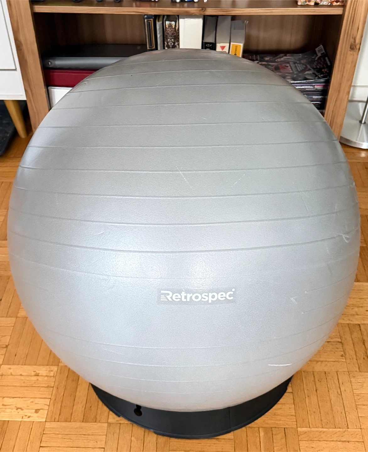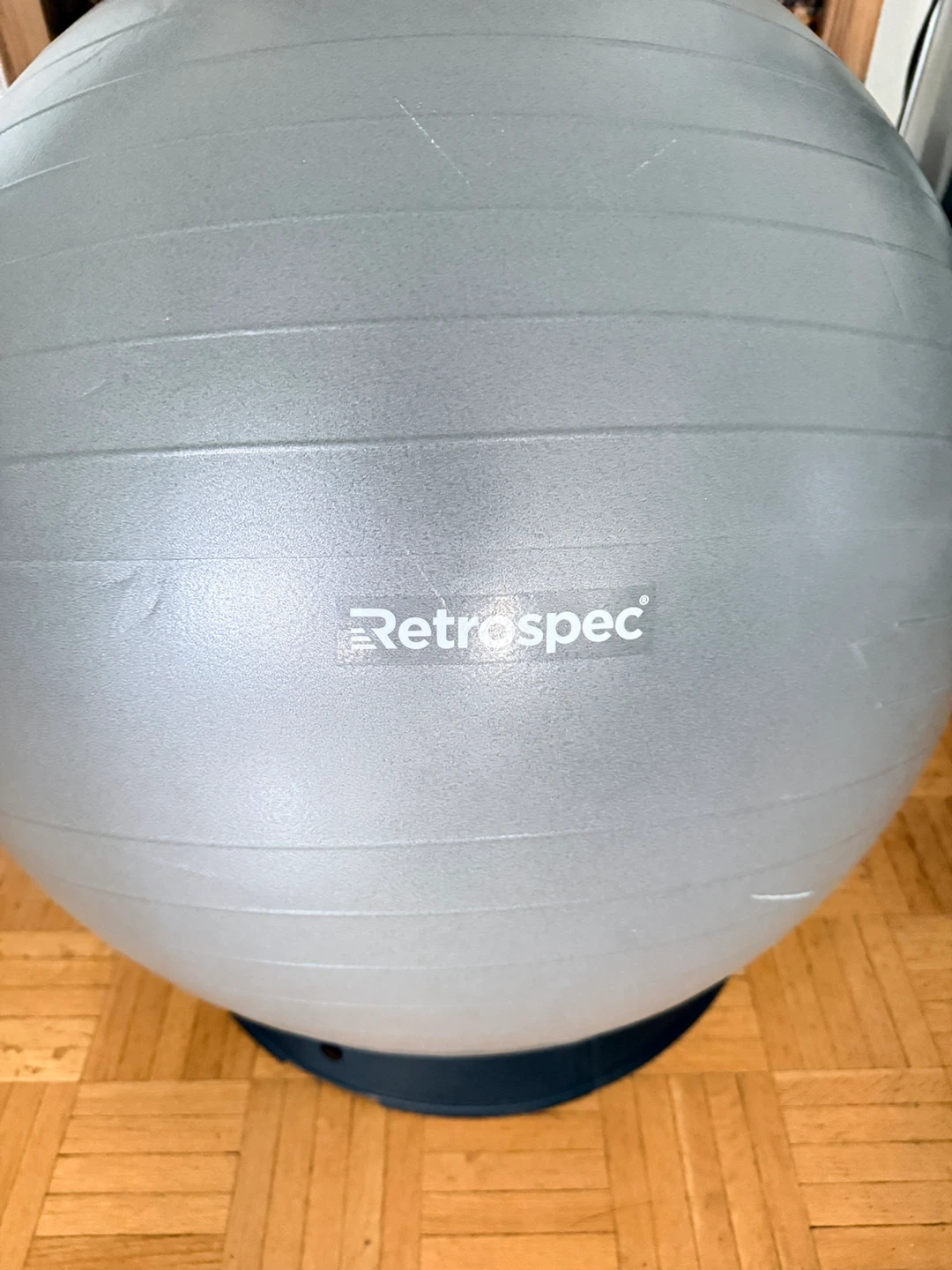 Selling a Retrospec exercise ball (65 cm) that comes with a base. It's in great condition and ready for someone to use for their home workouts.