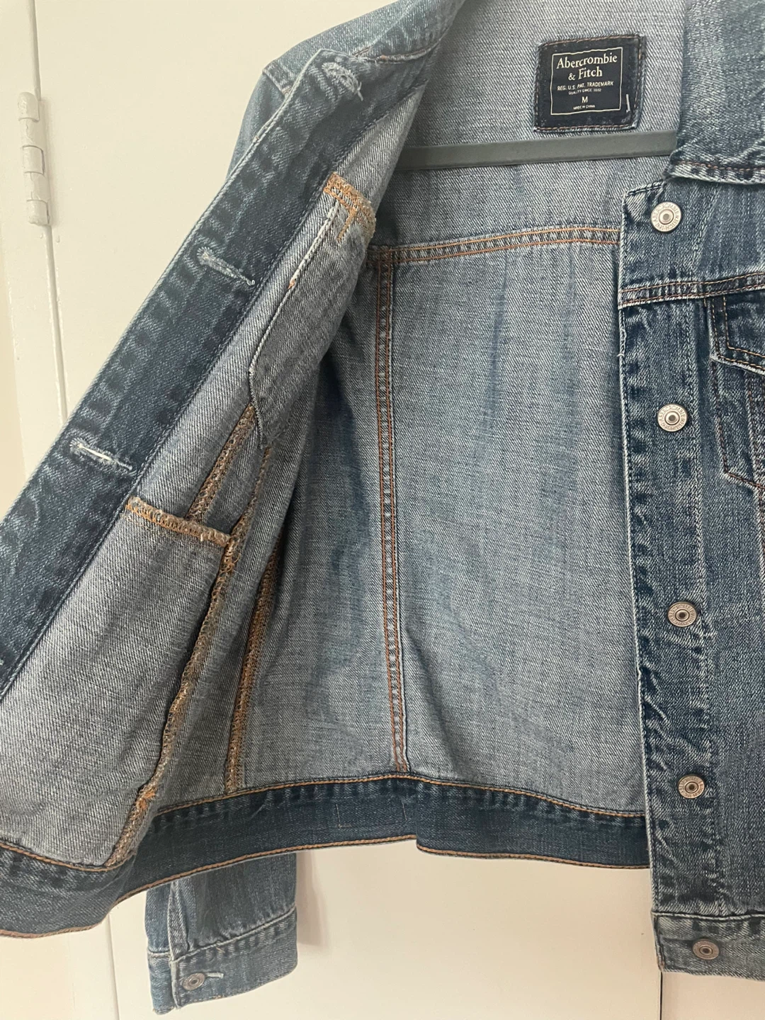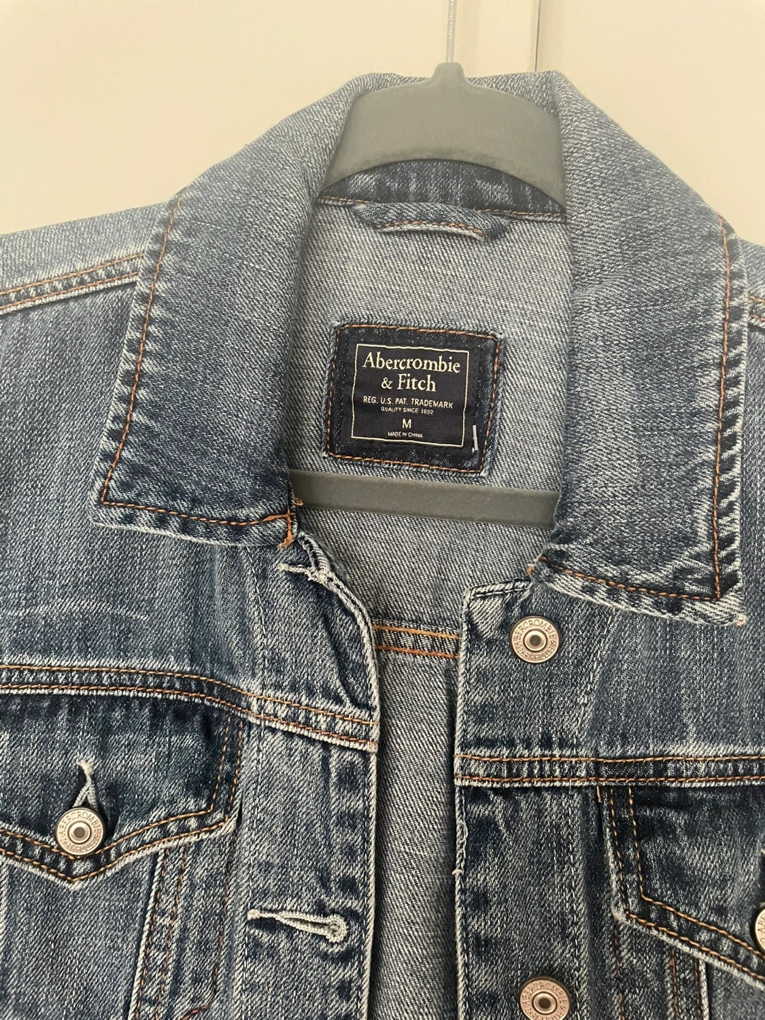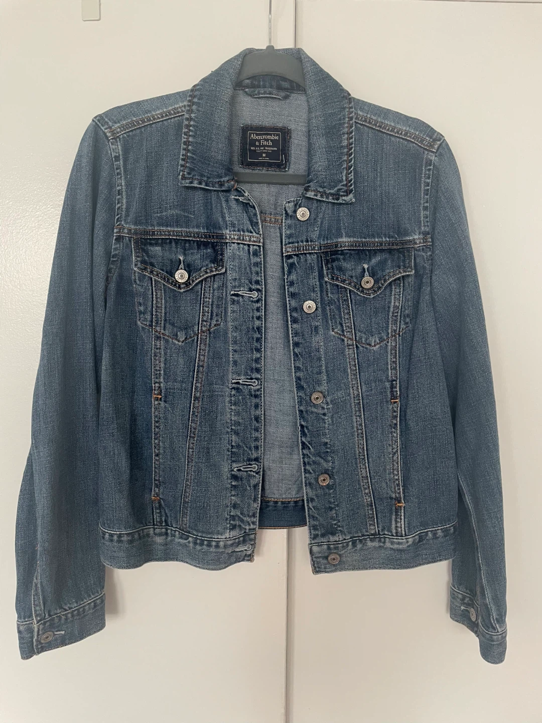 Here's a classic denim jacket from Abercrombie & Fitch! It's in great condition and ready for a new wardrobe. The size is M.