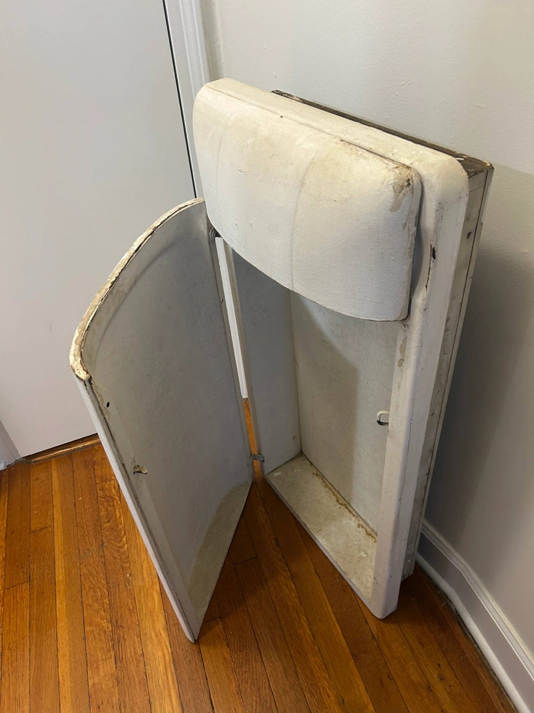 A very rare find! Selling a vintage metal laundry hamper wall mount. 1930s.