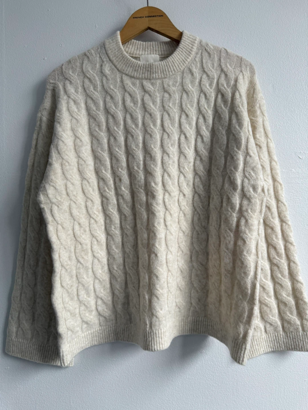 Selling a cozy H&M cable knit sweater says size xs but it’s so oversized on size M or L ! This sweater is not size xs It's a beautiful cream colour and in excellent condition new and clean!