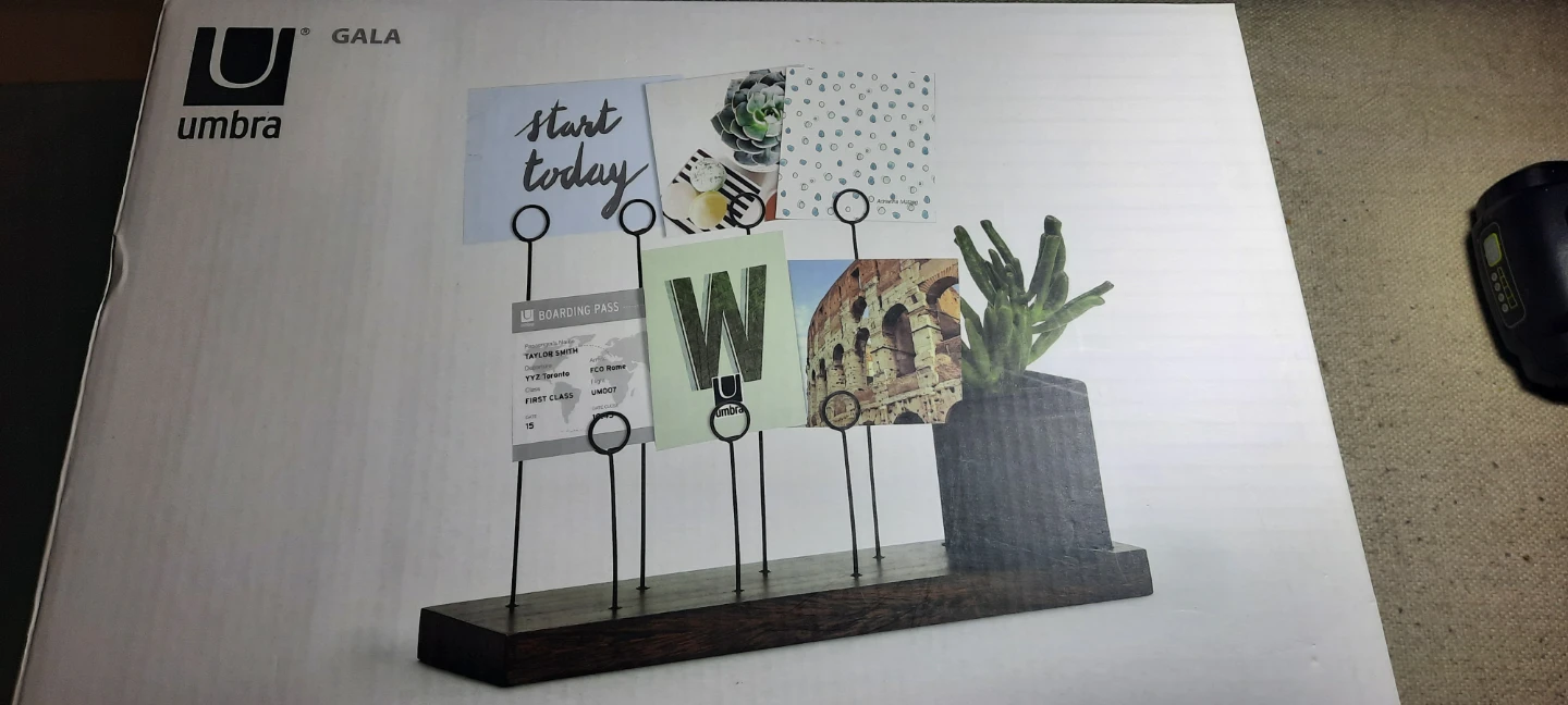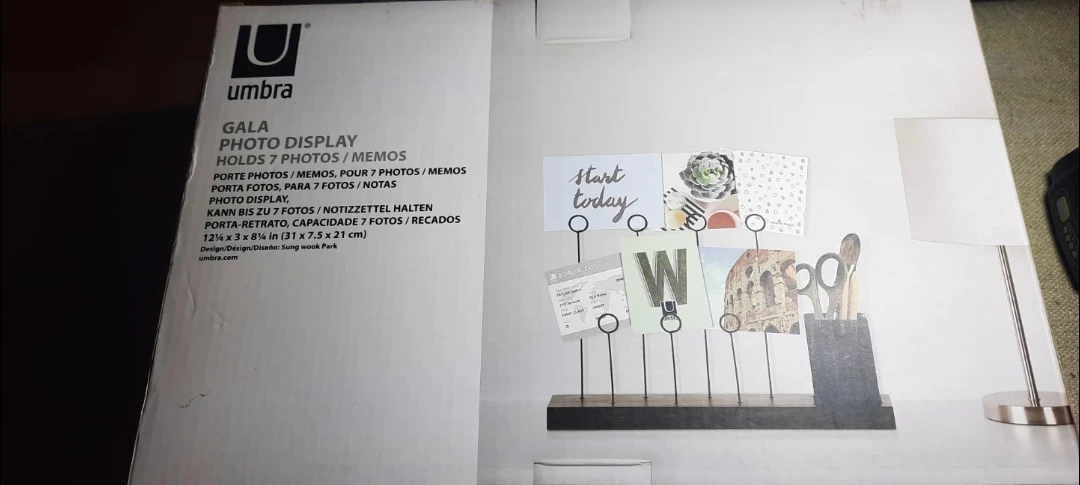Selling a Brand New Umbra Gala Photo Display in black and walnut! It holds 7 photos or memos and the dimensions are 12 1/4 x 3 x 8 1/4 in (31 x 7.5 x 21 cm). Comes with the original box.