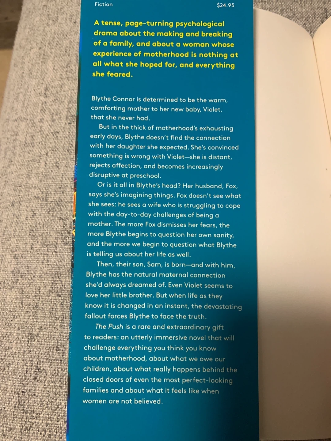 Selling two novels: "One Perfect Couple" by Ruth Ware and "The Push" by Ashley Audrain. Both are in great condition and would be a perfect addition to your bookshelf! "One Perfect Couple" is a tense, page-turning psychological drama, while "The Push" is a rare and extraordinary gift for readers